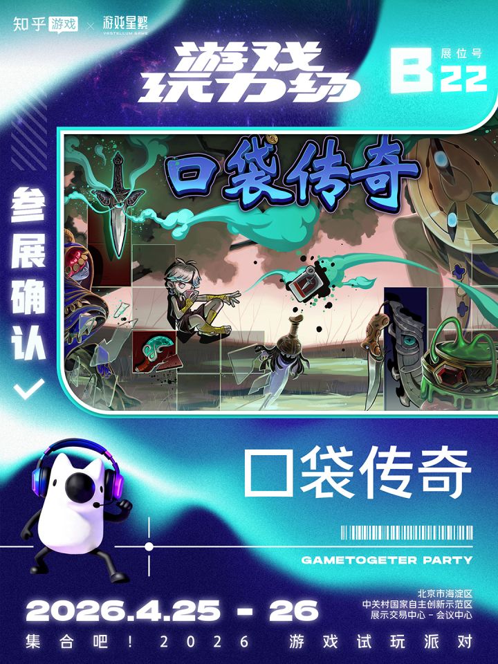 我们将参展游戏「玩力场」,并在现场带来《口袋传奇》的体验展示。欢迎大家在4月25-26日来展会现场打卡试玩/参观交流!没有复杂的流程,来了就能上手体验游戏核心玩法。现场还有主办方举行的抽奖、互动环节,奖品多多。无论是对游戏试玩感兴趣的观众,还是希望现场交流的从业者,都欢迎来我们的展位看看~📍展位信息:展位号:B22参展方:Paras games更多信息也可以关注主办方官方渠道获取,现