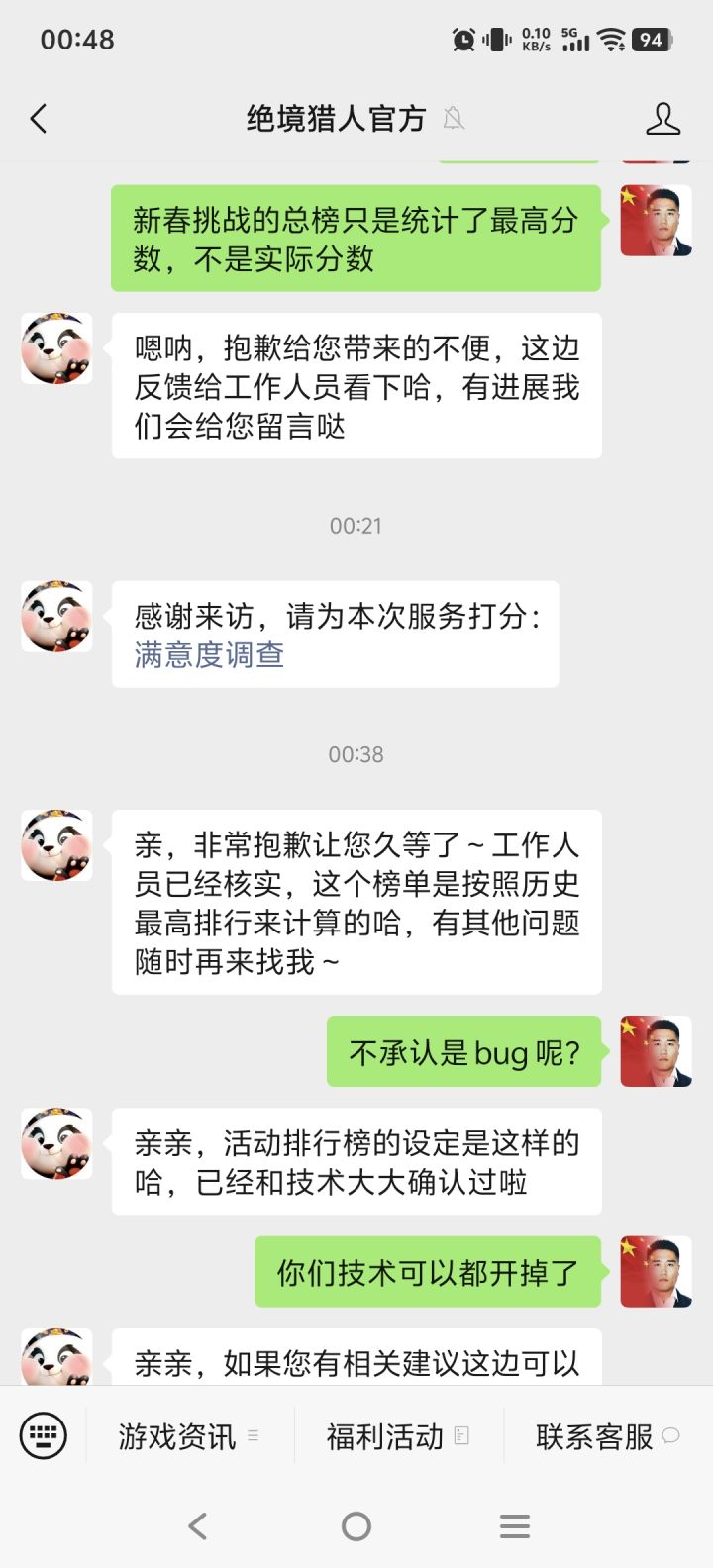 官方小助理 : 猎人大大您好,很遗憾活动没能达到您的预期。该活动排行榜是根据玩家活动内的最高积分真实排名,上榜的均为真实玩家。我们一直非常重视每一位玩家的感受与建议,也在持续优化游戏体验。如果您还有其他疑问或建议,欢迎随时联系客服,我们会第一时间为您解答。感谢您的理解与支持~