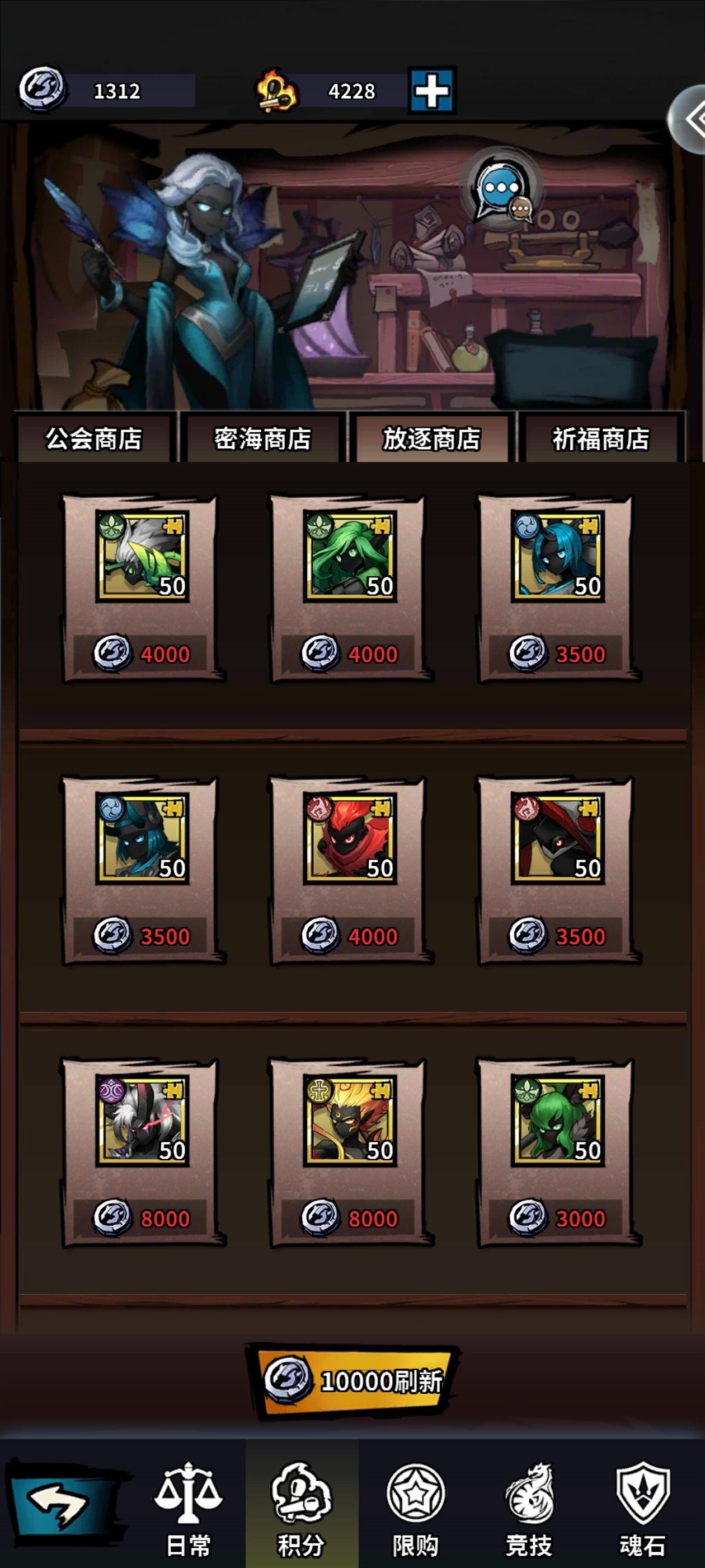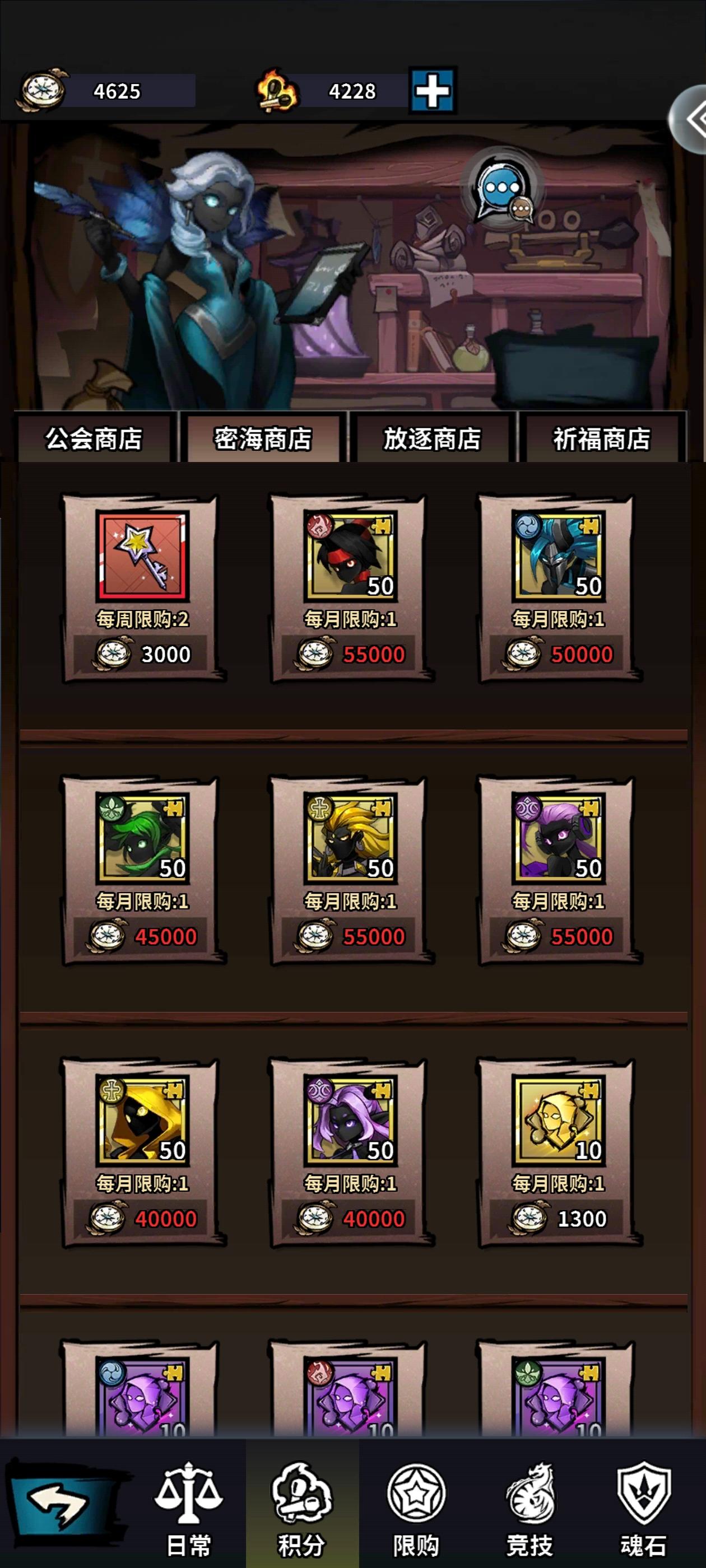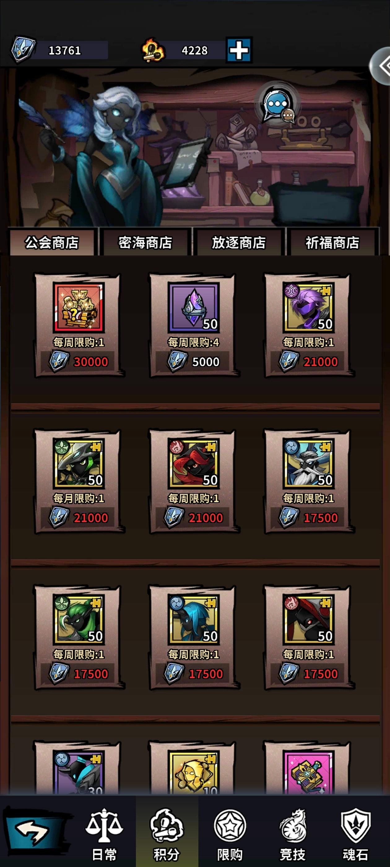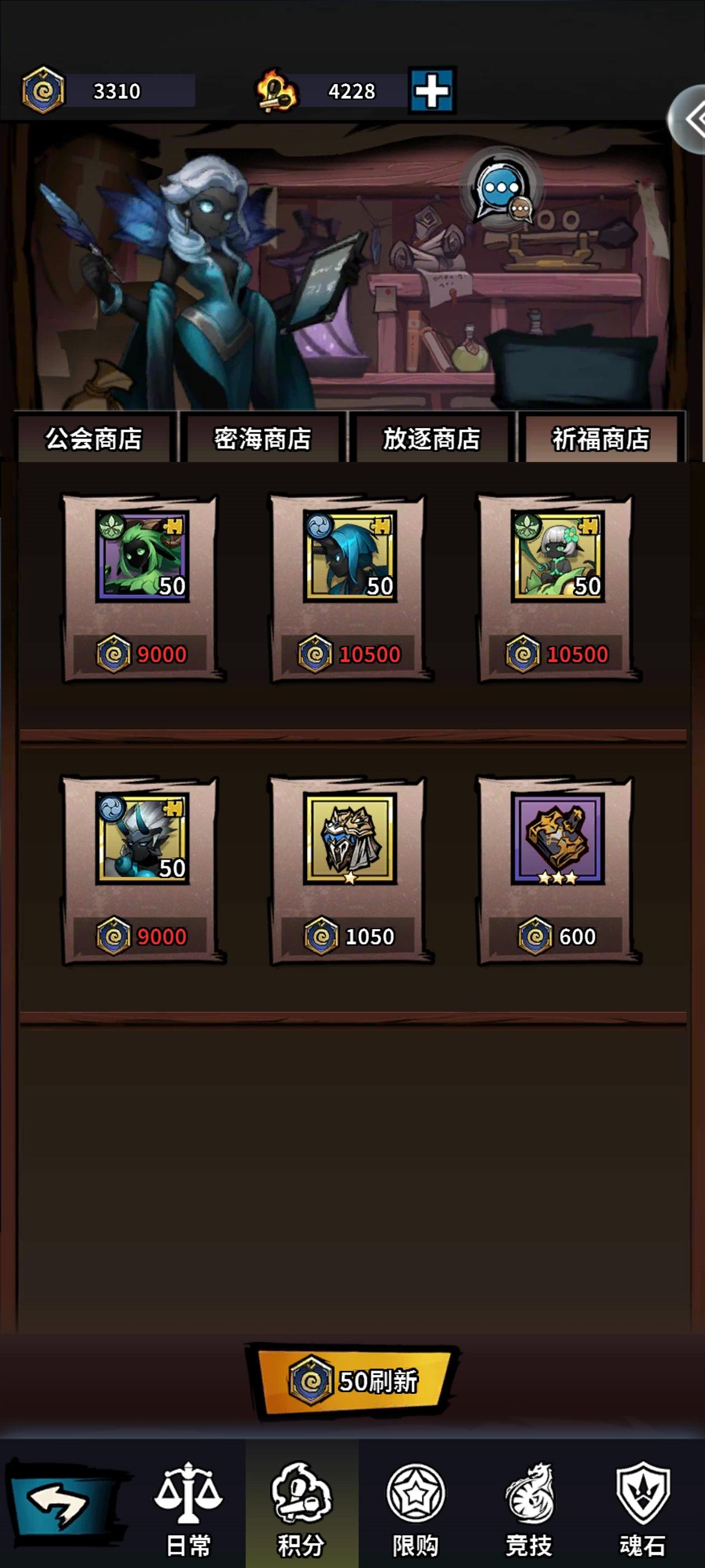 推进度送的暗系角色就不赖,可以先用着可以看竞技,秘海,工会这三个商店能换的啥暗和光(三系也行高级抽卡会送灵魂碎片,可以换一部分本体种族抽奖送的碎片自选,这两慎用秘海的高级抽奖5折,建议买