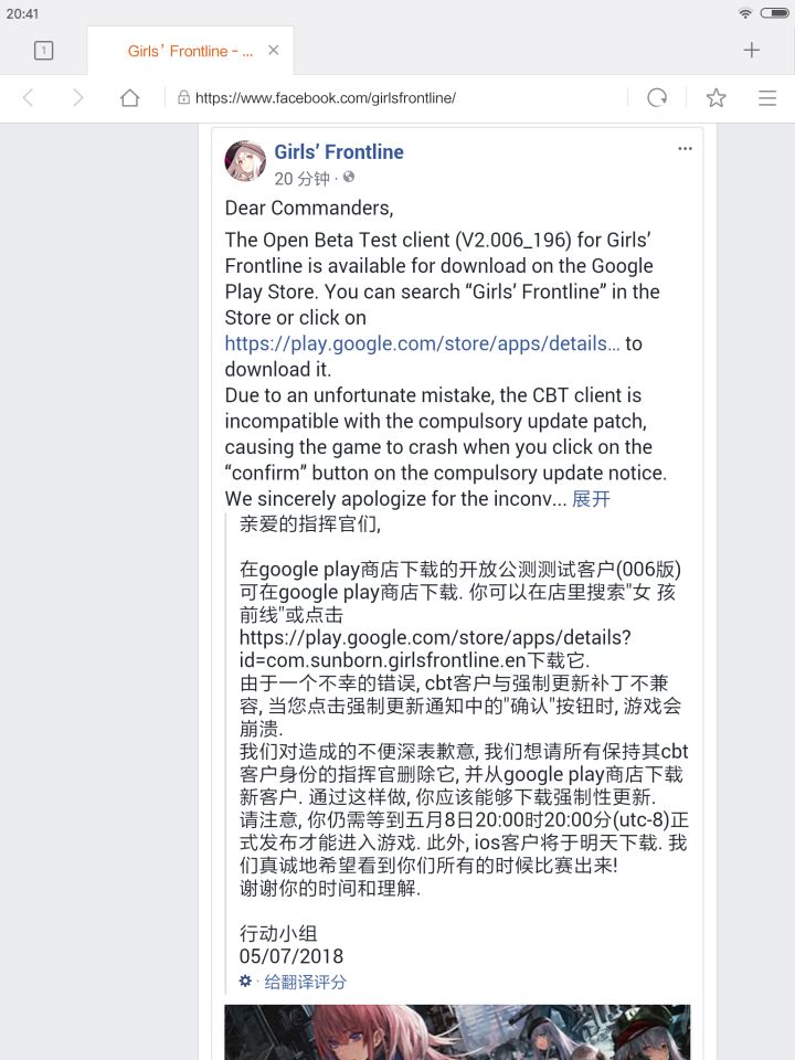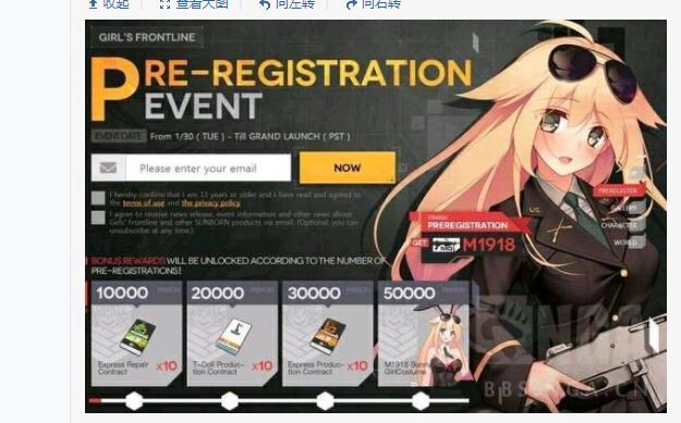 今日,国内知名枪娘手游《少女前线》正式开放了美服的预约链接,据知情人士透露,预约达到一定量将会赠送稀有皮肤,和大量的资源《少女前线》是由云母组独立研发,数字天空代理发行的国人原创二次元枪娘养成战术手游,游戏延续了独立游戏《面包房少女》的世界观,时间设定在第三次世界大战之后,人类社会的秩序遭到严重破坏,世界和平必须依赖安全承包商才能得以保障,而玩家在游戏中扮演安全承包商旗下的一名指挥官,每位指挥官
