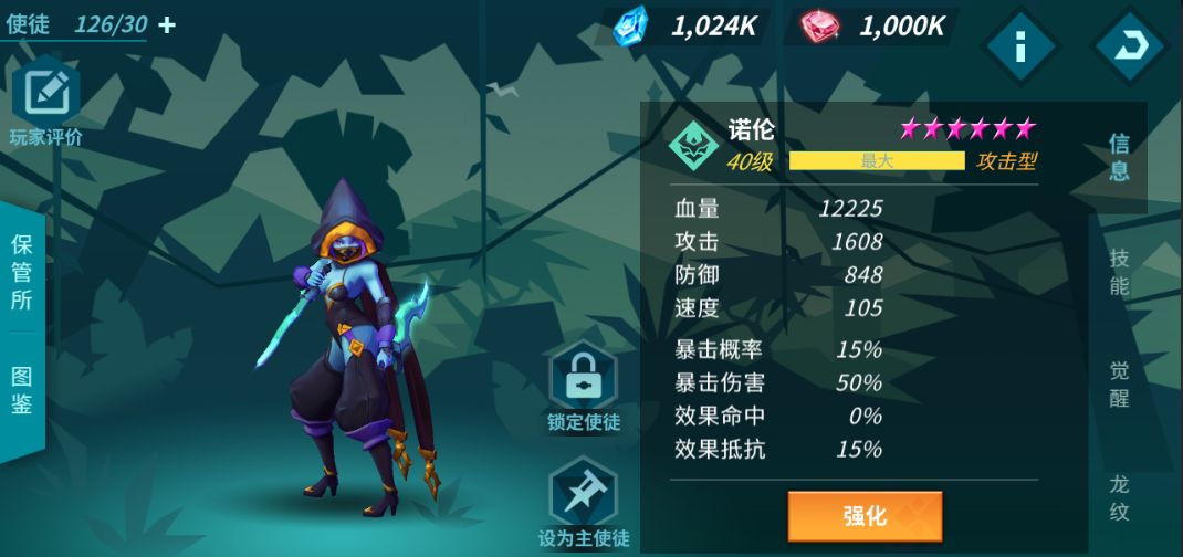 2星使徒食尸鬼来自于邪恶阵营,1技能吸血,2技能可以选择减少敌人能量或者回复自己能量,3技能为按目标当前血量的比例伤害,被动触发,并可选择吸血或者补刀。大家都知道按血量比例的伤害技能是非常克制体力型使徒的,只可惜对首领无效。