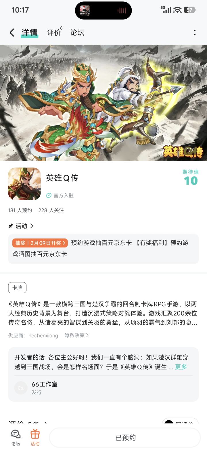 论坛专属活动已启,速来参与赢福利!预约游戏发新帖晒截图,赢百元京东卡!【参与方式】1.点击关注预约游戏并发新帖晒截图2.在本帖下方评论区分享发帖链接即可【活动时间】即日起至2月5日【活动奖励】随机抽取1名符合参与条件的玩家获得:100元京东卡一张【活动规则】1.内容禁止涉及暴力、色情、政治、恐怖内容,违者做删帖处理并取消活动资格;2.回复内容需与活动主题相关,若抽中楼层与主题