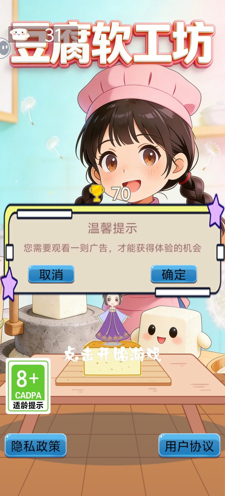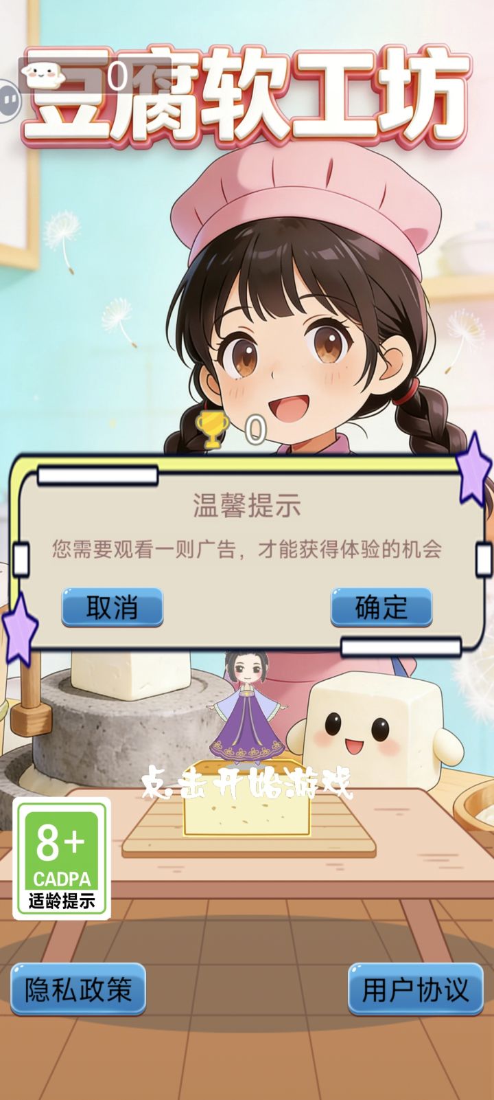 玩法很简单,就是一直点点点,开头说是要看一段广告才能游玩,测试的时候反正没有看,不知道正式上线需不需要。画风很可爱,可以当打发时间用的游戏