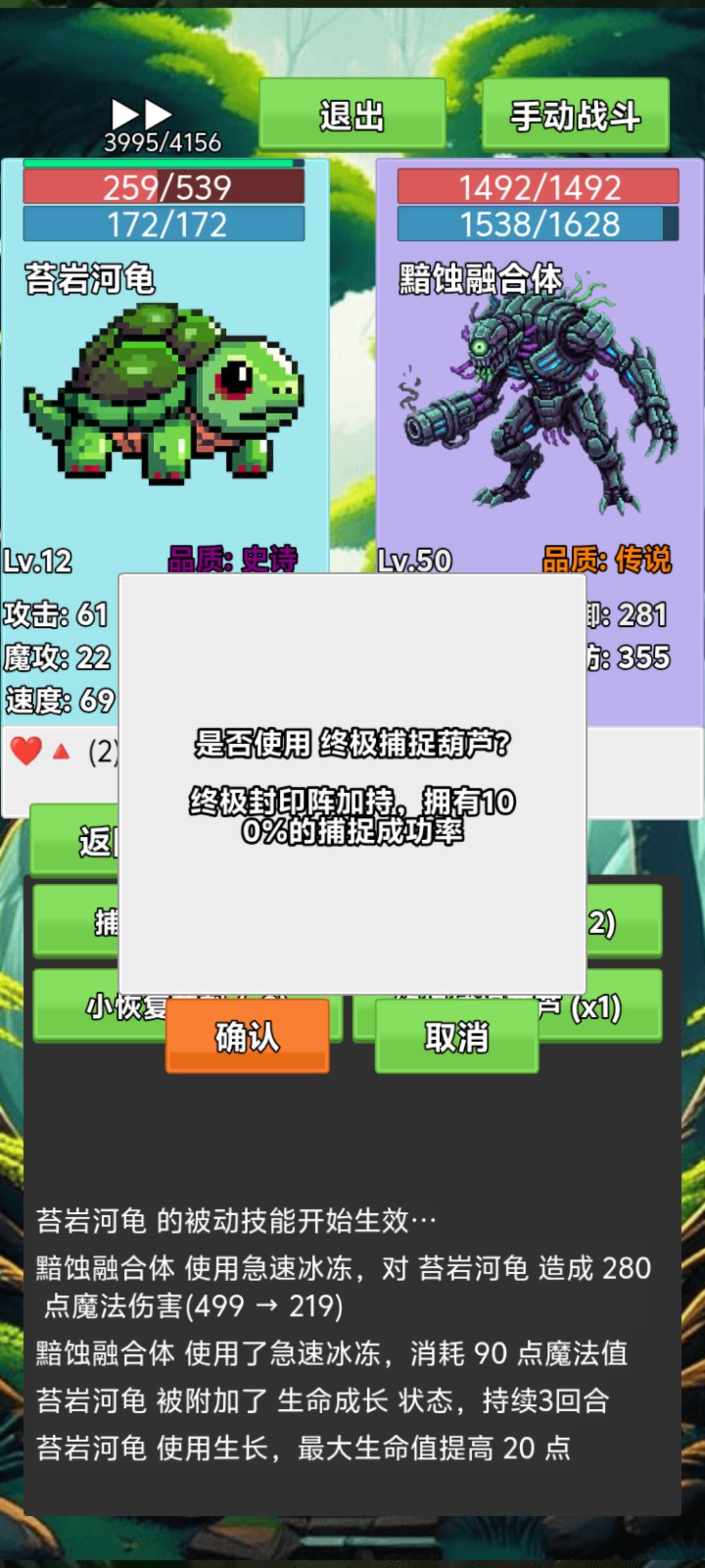 一周目(记住,多存档,多存档,死一次掉25%金币,通关后才写的,又是全靠回忆了,重要部分不会出错。每次写攻略都是一大堆,耐心看吧) 开局初始水灵,1000金加包里一个“大师球”(终极葫芦)还有个经验果和几个药。熟悉下主界面的各种东西,看一下新手必看,再把设置里回血和遇到传说一开,开始下一步 你可以先给水灵吃个经验果升到7级再去村东河流打水灵赚金币经验顺便抓个传说资质的(弱→普通→稀有→史诗→传说)