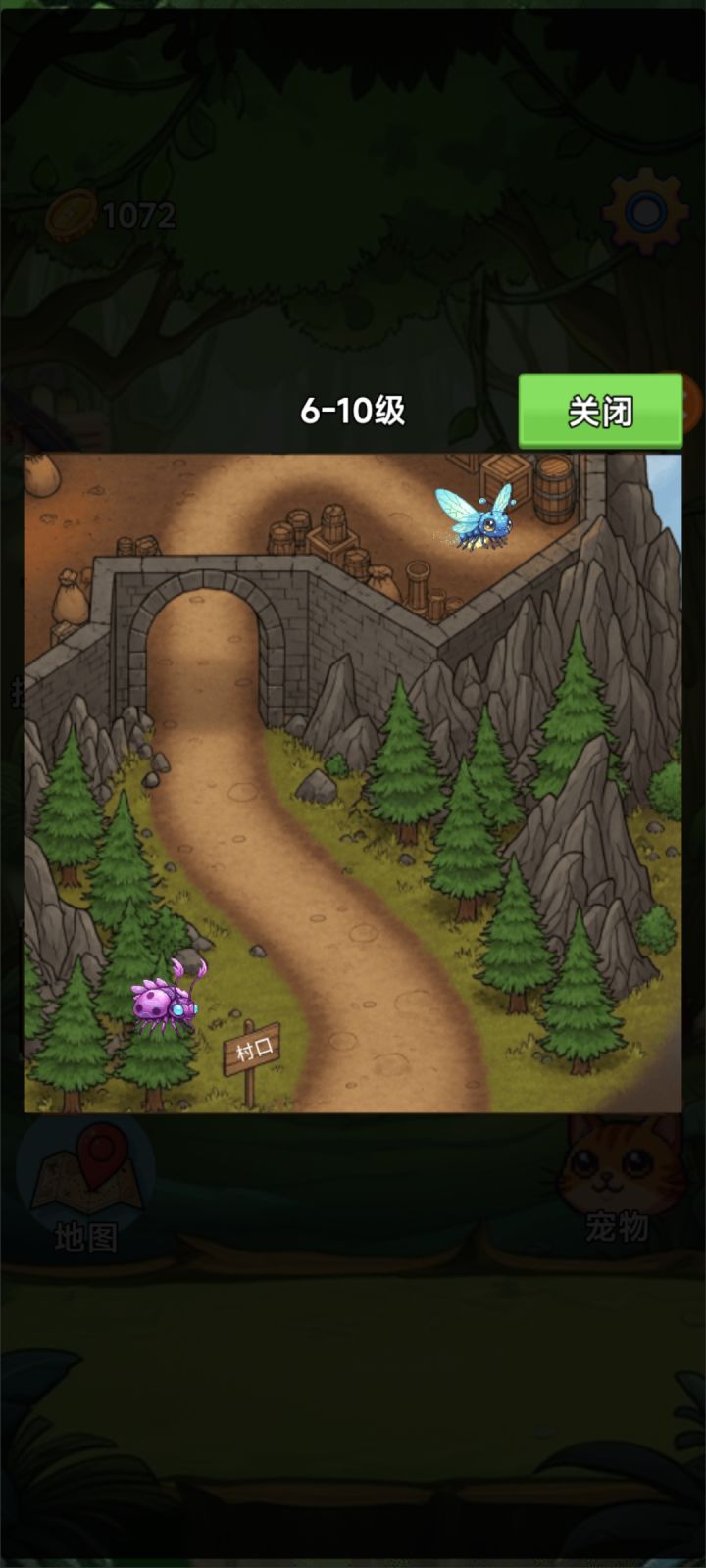 建议先把宠物升级到15级,有一定强度再触发,因为失败后不仅损失25%金币,还额外损失250金币。点击村口路牌,触发与愤怒的瓢虫对战,胜利获得2倍速解锁。