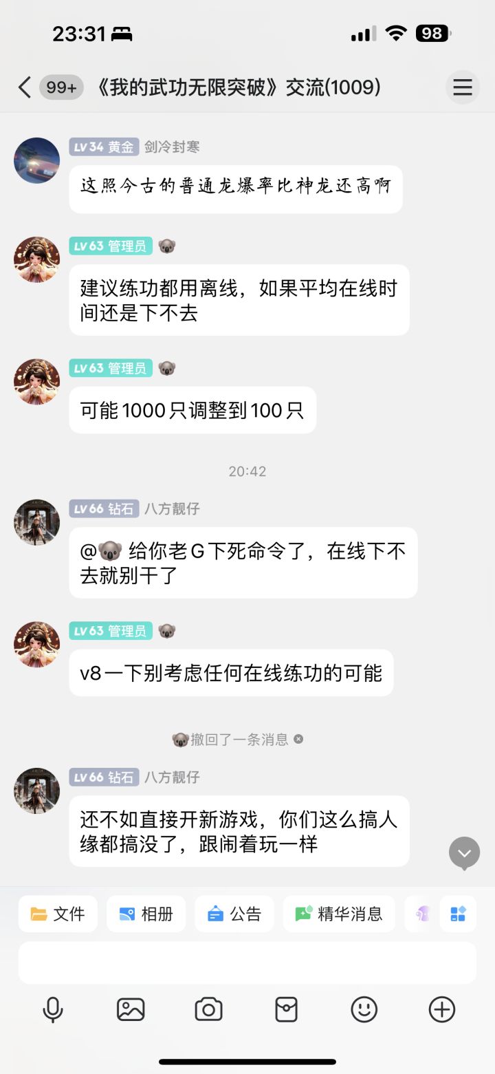 手机用户73066818 : 这游戏,想玩先来一个648起步,然后你以为648开个至尊卡能玩了?不行一个称号5000起,不是元宝,是RMB,开俩一万,高级点的功法一律全抽奖,时装升满几万元宝,群里人每天下副本门票就的花千八百的,真不知道这游戏是给哪个冤种玩的。