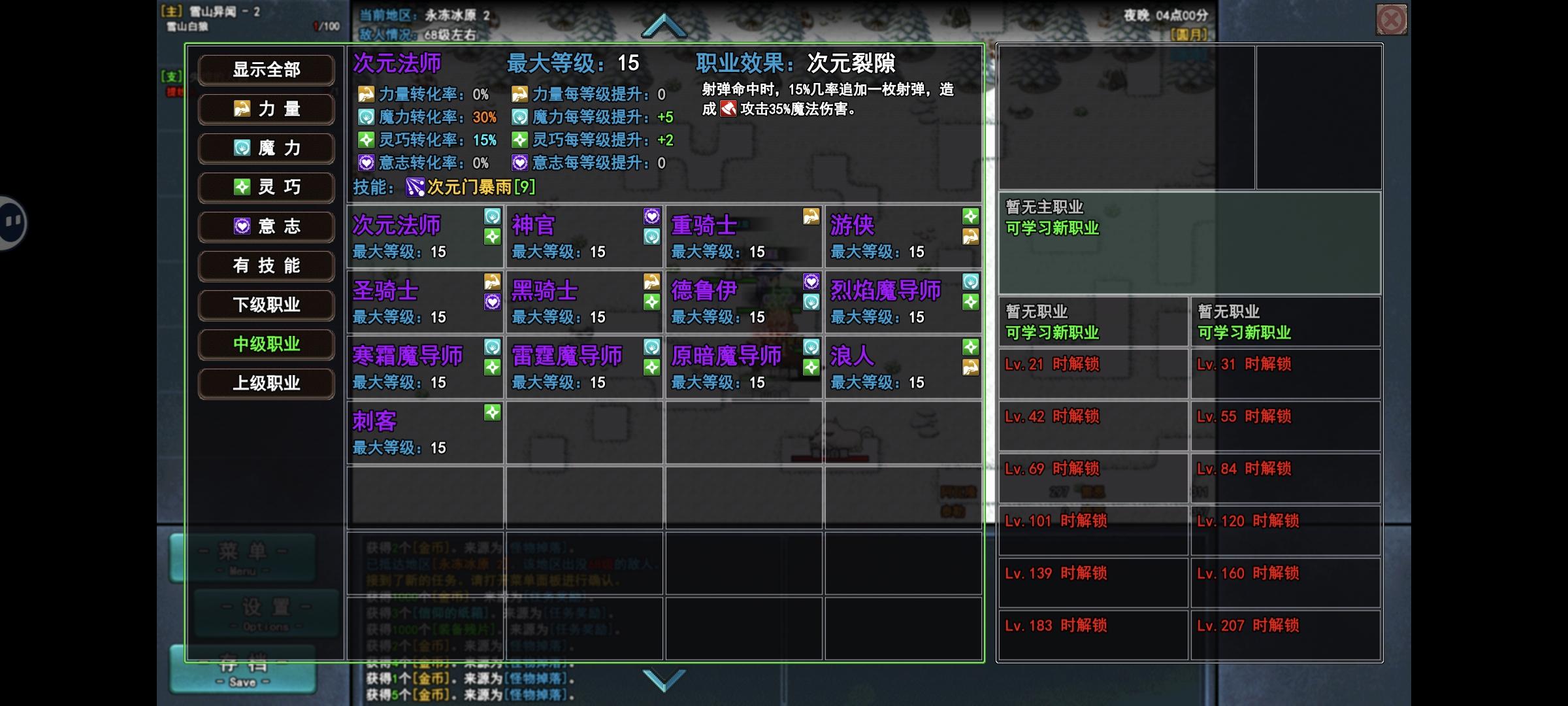解锁中级职业,需要通过主线任务解锁,先打败国王,再打败暴君,任务完成后解锁。小技巧:打boss图,进度条积累很慢,初级职业打起来也吃力,特别是暴君有回血技能。建议优先学有主动技能的初级职业(中级职业都有技能)。进度条到98-99就存档,出的boss是国王不是暴君就退出游戏重新进,直到出暴君就可以了。