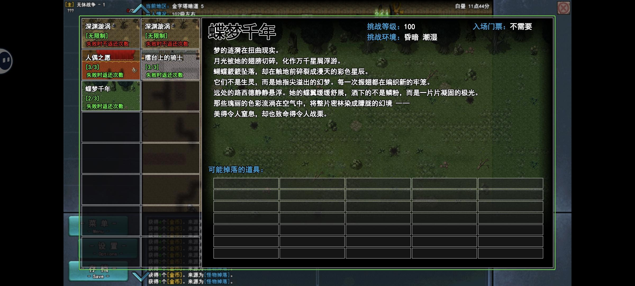 这次更新商店多了一堆宝物,增加三个射手职业(但是射手仍然很弱,伤害不到法师一半)和祭司职业(很强,除了坦克都带一个),挑战里面多了蝶梦千年,任务就是岔路重启那里的,一坦一奶两法就能过(四法也行,得带召唤物保证召唤物一直有和祭司),打完在干涸大地有新图,解锁疫医(溢出治疗转真伤,感觉不如教官),妖僧多了一个饰品,给上金刚经无敌了,另外boss不死祭司掉的装备确实不错,多个被动,属性也更高。现在问题是