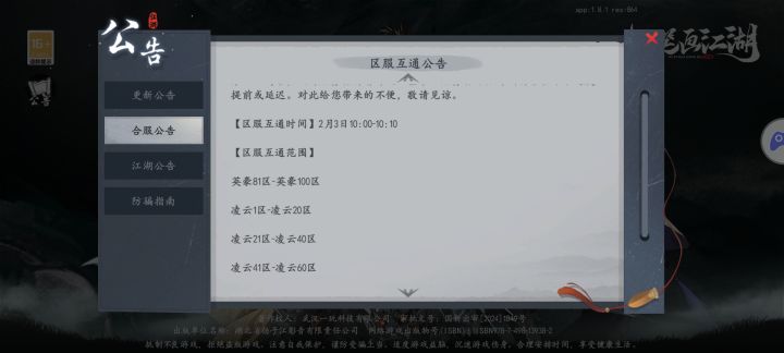 官方执笔画江湖 : 抱歉,侠友!此番江湖初遇,未能让您尽兴而归,实在是我们的疏忽。初来的侠友可加入最新区服游历江湖,结识其他武林新秀。