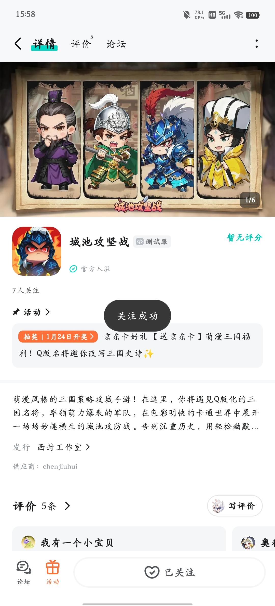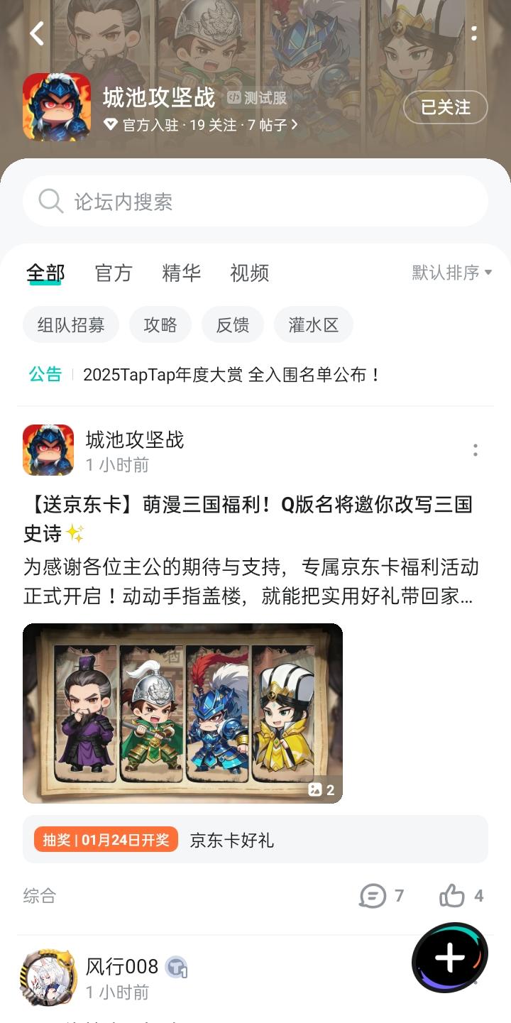 为感谢各位主公的期待与支持,专属京东卡福利活动正式开启!动动手指盖楼,就能把实用好礼带回家,助力你的萌系三国之旅~【京东卡抽奖活动】▶ 参与方式1.点击关注发帖账号和《城池攻坚战》且发新帖晒截图2.在本帖下方评论区分享发帖链接即可【奖品发放】到达开奖时间后,由taptap系统随机抽取符合要求的幸运玩家,自动发放兑换码(对于同一账号大量故意发布评论刷楼层导致其他玩家中奖概率降低的行为的用