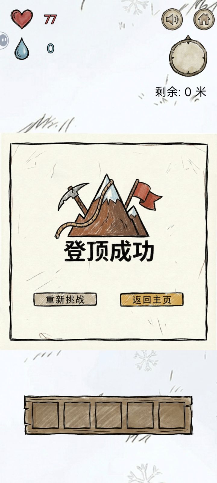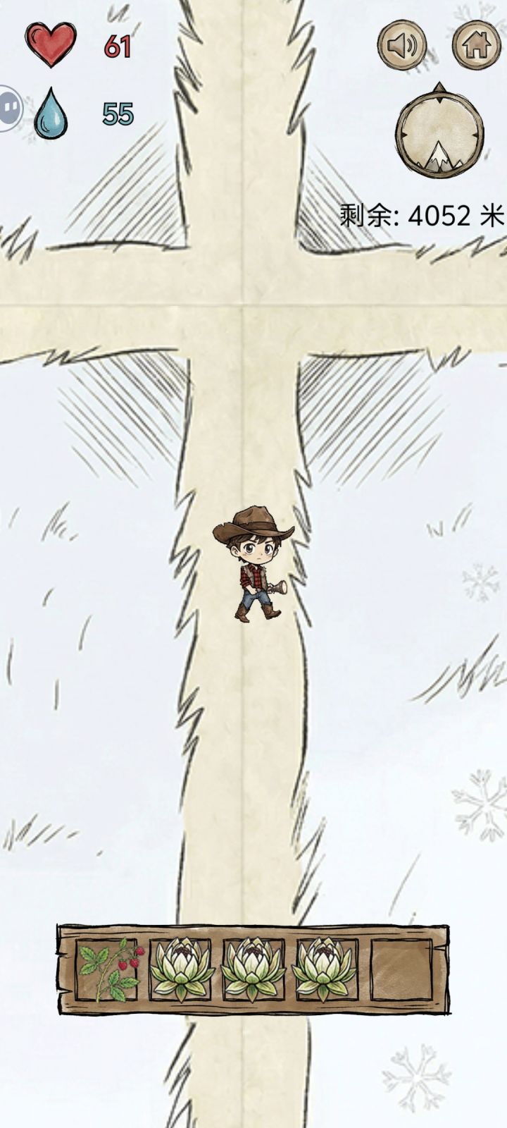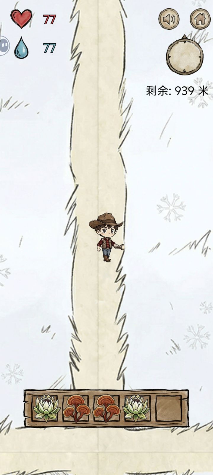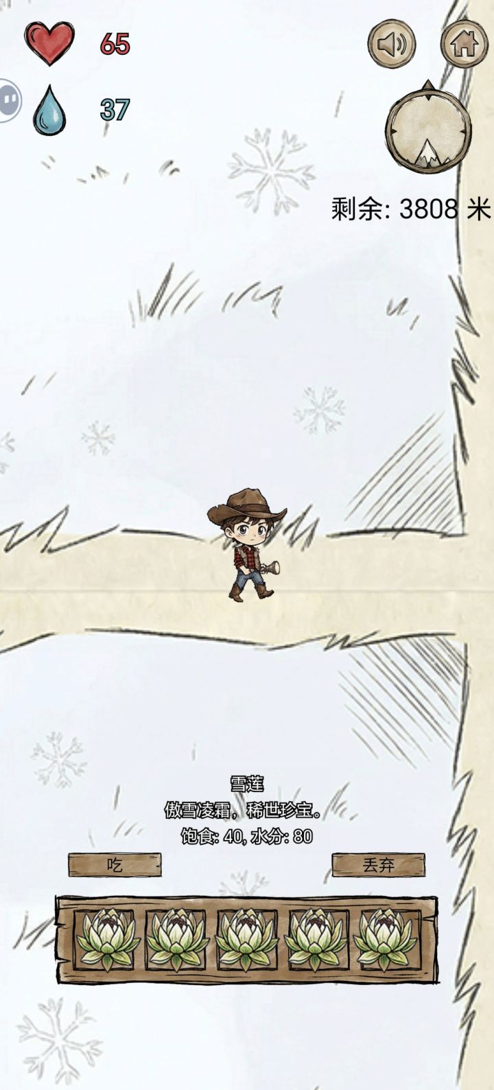 亲测有效,前面只要斜着向上移动就行,物资还挺多的,到了地岩表面能采到的植物逐渐变少,就只有:地衣(水分只有10)、薄荷、水芹菜,岩白菜(中间两种30+,白菜20+)。前期尽量囤水分比较多的植物,如蓝莓,树莓,刺梨(水分最多45左右,其他都40)不能捡的有松子,虽然加饱腹但水分减五,加饱腹的也不需要,主要维持水分。到了后面 ,最好是平移往上,推荐可以先绕一圈(40~50步) ,没有植物再逐渐上移,尤其是雪山,就只有两种植物可以采摘 ,雪莲(水分80)和灵芝(饱腹40水分20)还有,别想着一只手玩 ,没及时吃食物就很容易扑街 ,第一次玩的时候,就差200多米登顶了 ,猜猜看为什么失败?(单纯运气好,那时候不会玩 )对咯,没有及时补充水分😅