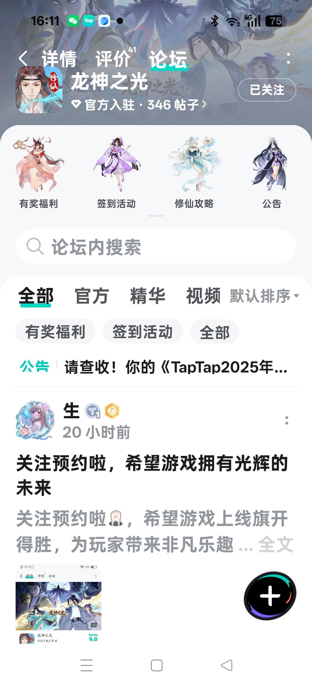 论坛专属活动已启,速来参与赢福利!预约游戏发新帖晒截图,赢百元京东卡!红颜伴修仙,情缘共长生,修真路上不再孤单。【参与方式】1.点击关注预约游戏并发新帖晒截图2.在本帖下方评论区分享发帖链接即可【活动时间】即日起至2月5日【活动奖励】随机抽取1名符合参与条件的玩家获得:100元京东卡一张【活动规则】1.内容禁止涉及暴力、色情、政治、恐怖内容,违者做删帖处理并取消活动资格;2