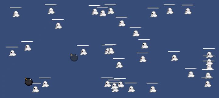 拖拽左下角的炸弹,可以在场地中释放炸弹,轰击移动的怪
