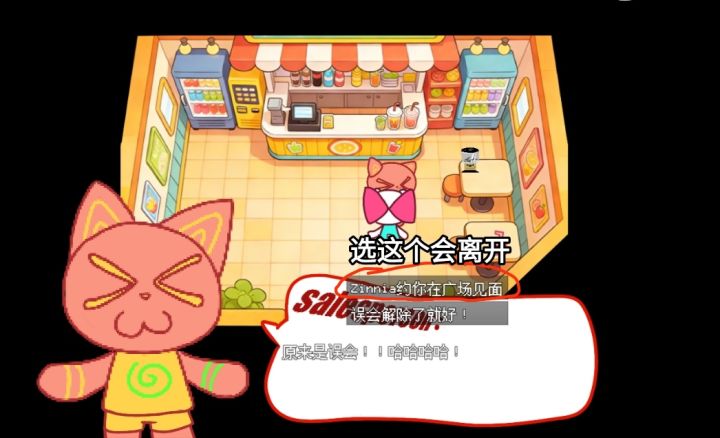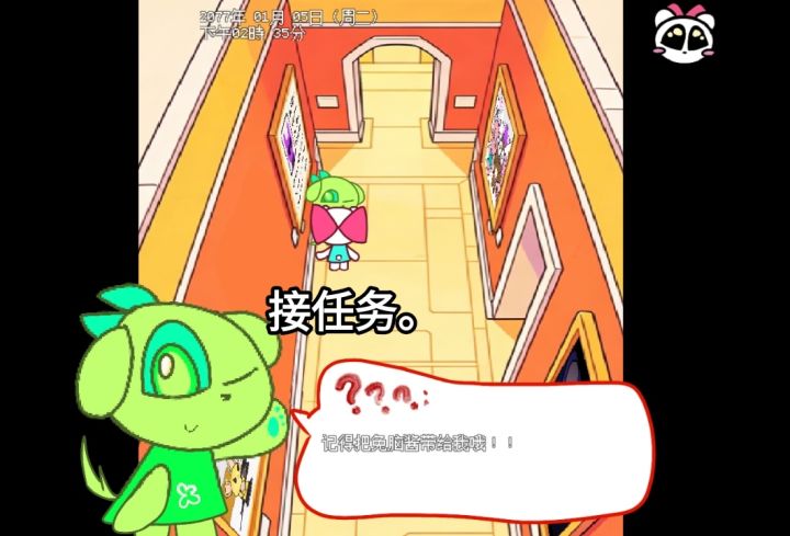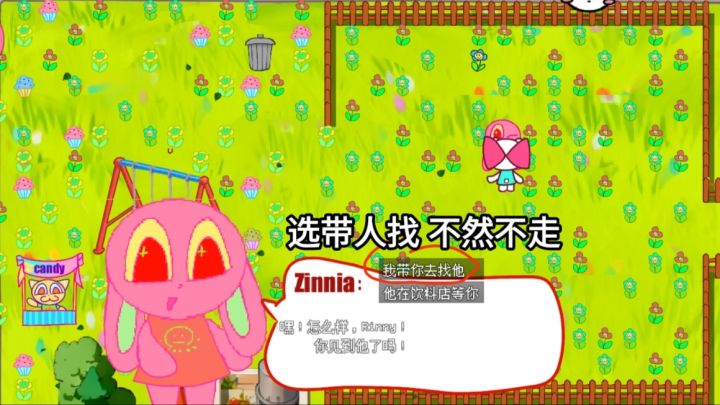 ①开局从家里出来往左走,到一个标牌被木板遮住的地方进去,这里就是公司了,往前走里面站着绿色NPC,找他接取一周目任务。②右下方向,找红色兔子接取粉色花朵任务,而后往左边走,能看见不停转圈的迷糊熊,找他询问粉色花朵信息,得知花朵在大公园里。再往左边走,红色房子前面有个黑猫,找他对话2次,接取寻找妹妹的任务。而后随着道路往下走就是大公园,右下角红色头发的就是黑猫的妹妹,跟她对话,选择告知她哥哥。大公