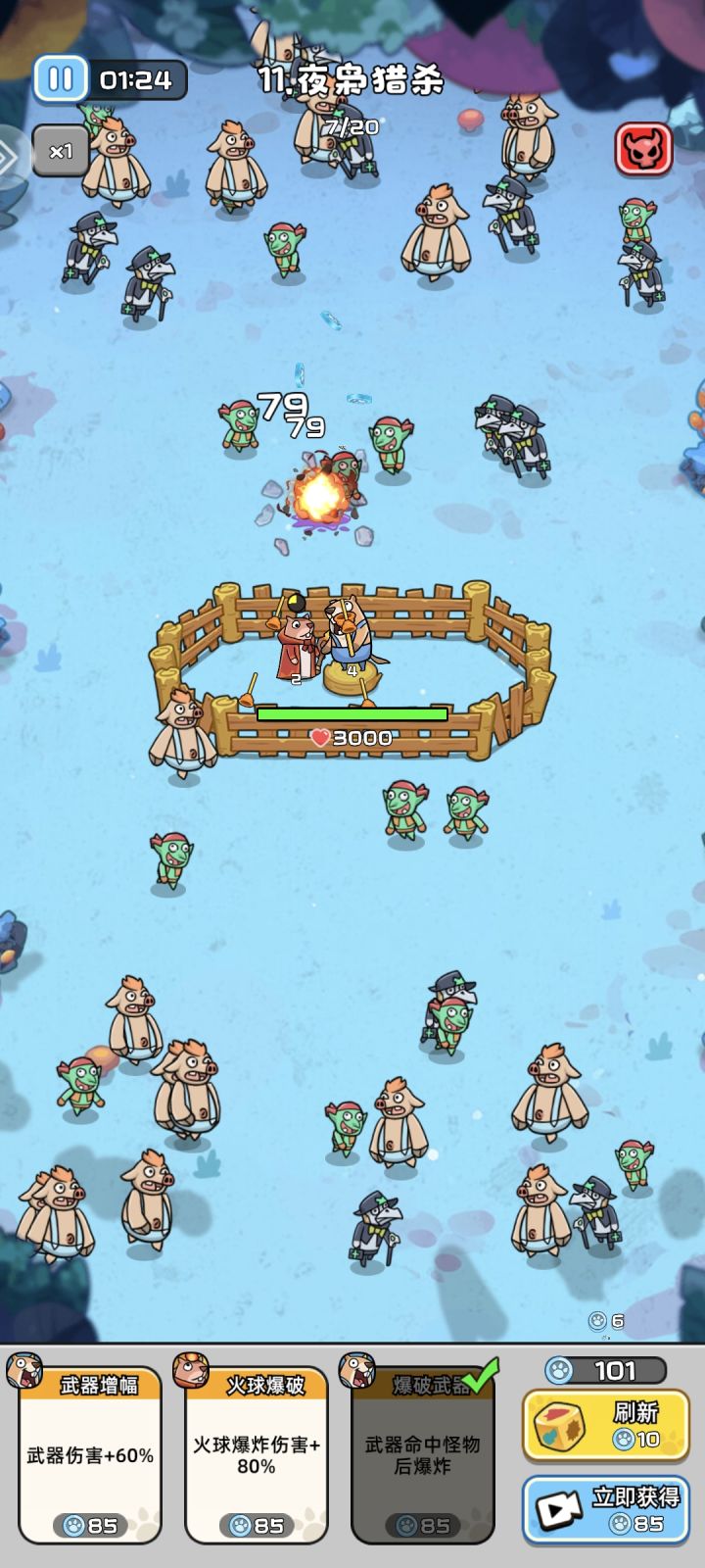 游戏轻松,肉鸽游戏中比较有意思的,就是免广告,搞个永久带点,可以长时间挂机玩