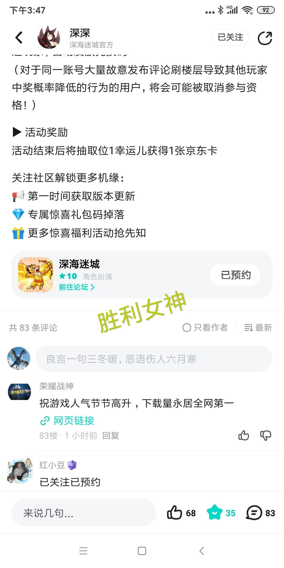 一场因过期泡菜引发的丧尸危机,一个拿着攻坚的的防毒面罩鼹鼠,一次充满笑声与策略的深渊求生——欢迎来到《深海迷城》!点击预约,成为首批地心探险家 <<加入这场地底深处的荒唐冒险,用你的脑洞,闯出属于鼹鼠的生存之路——立即预约,解锁专属福利!🎁 专属福利:【京东卡】▶ 参与方式1.点击关注发帖账号并预约《深海迷城》且发新帖晒截图2.在本帖下方评论区分享发帖链接即可【奖品发放】到达开奖