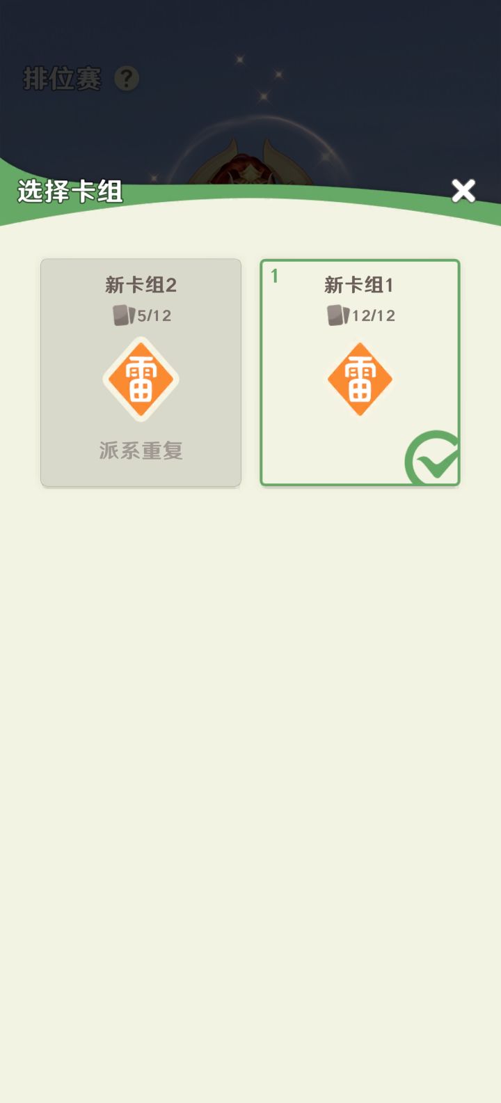 只有雷的卡牌,排位赛又不给重复派系,直接玩不了了,任务都没法完成哪来的卡组