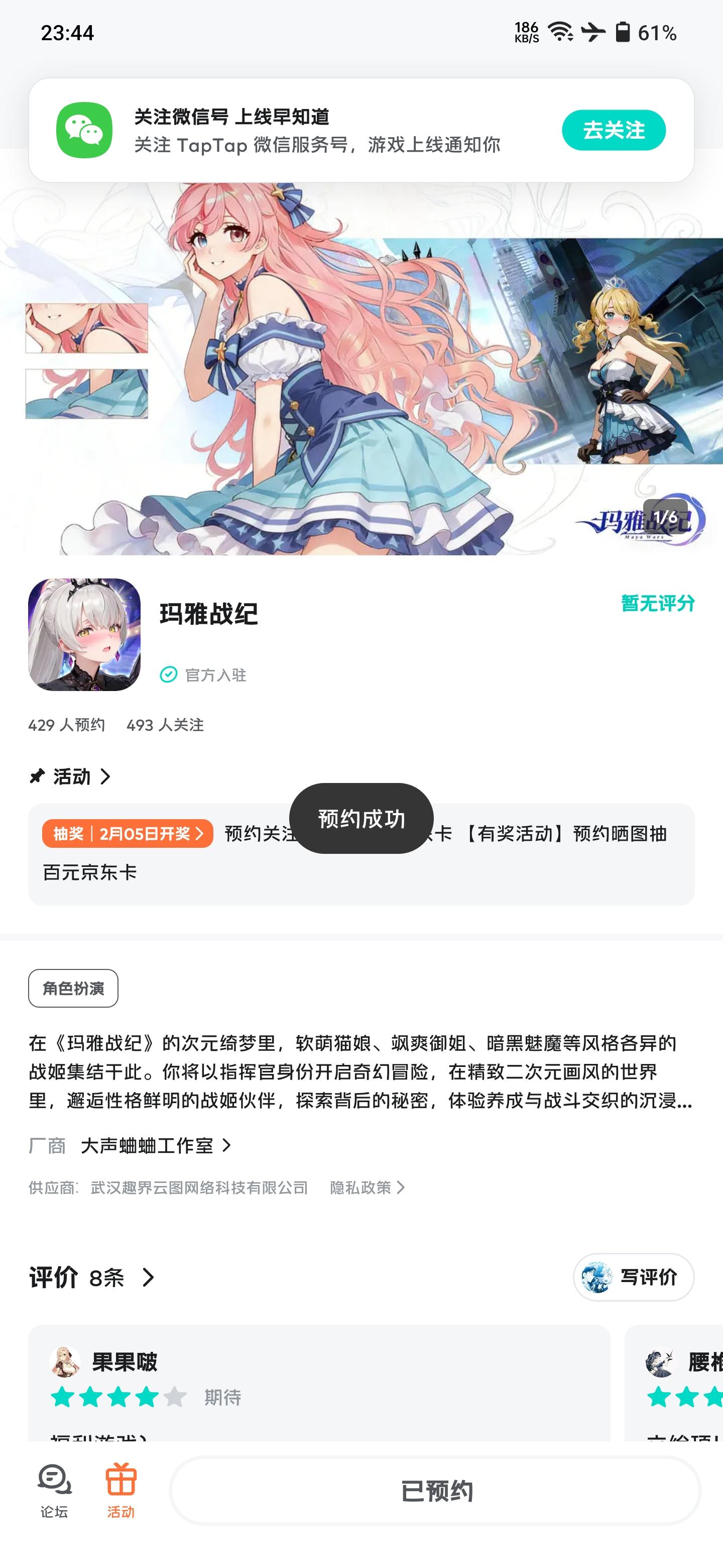 已预约,祝游戏红红火火