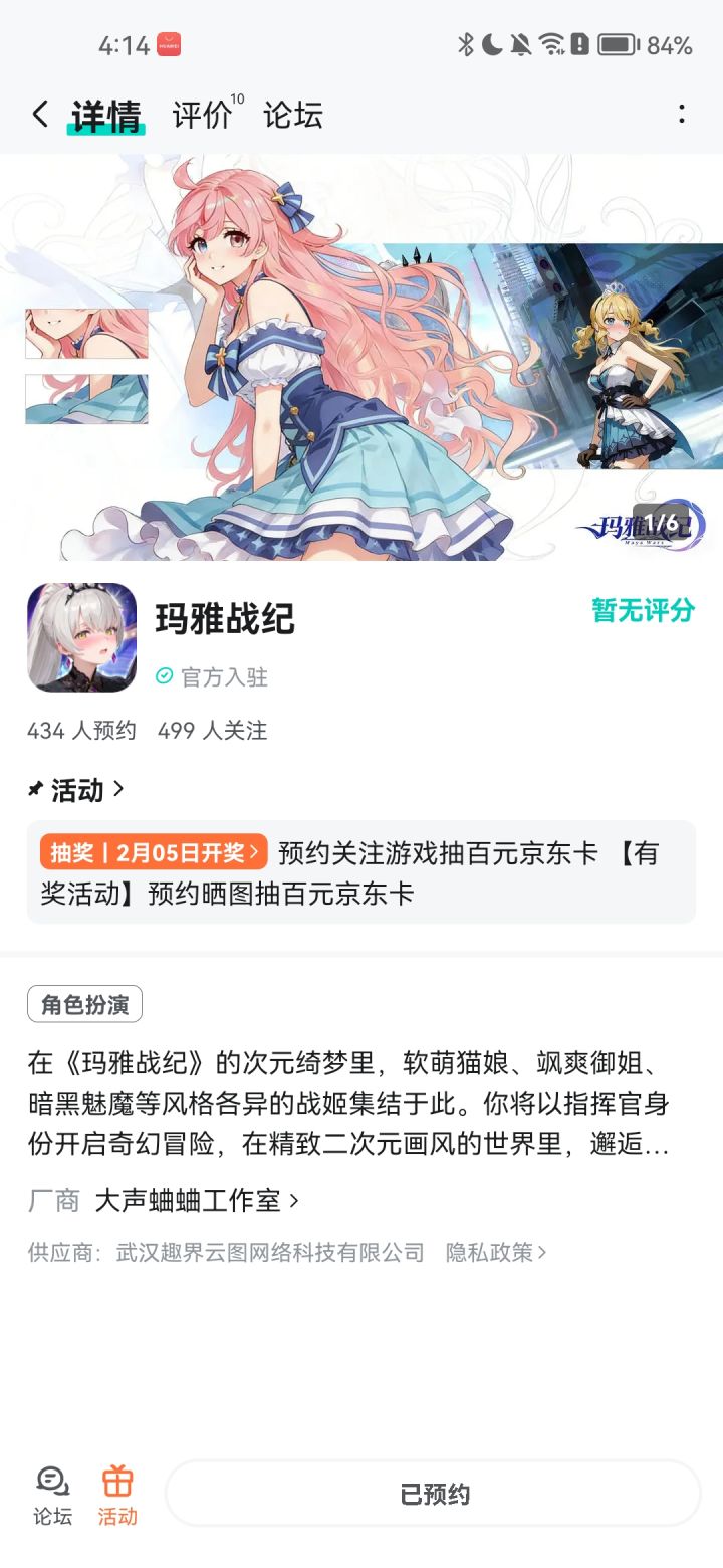 论坛专属活动已启,速来参与赢福利!预约游戏发新帖晒截图,赢百元京东卡!红颜伴修仙,情缘共长生,修真路上不再孤单。【参与方式】1.点击关注预约游戏并发新帖晒截图2.在本帖下方评论区分享发帖链接即可【活动时间】即日起至2月5日【活动奖励】随机抽取1名符合参与条件的玩家获得:100元京东卡一张【活动规则】1.内容禁止涉及暴力、色情、政治、恐怖内容,违者做删帖处理并取消活动资格;2