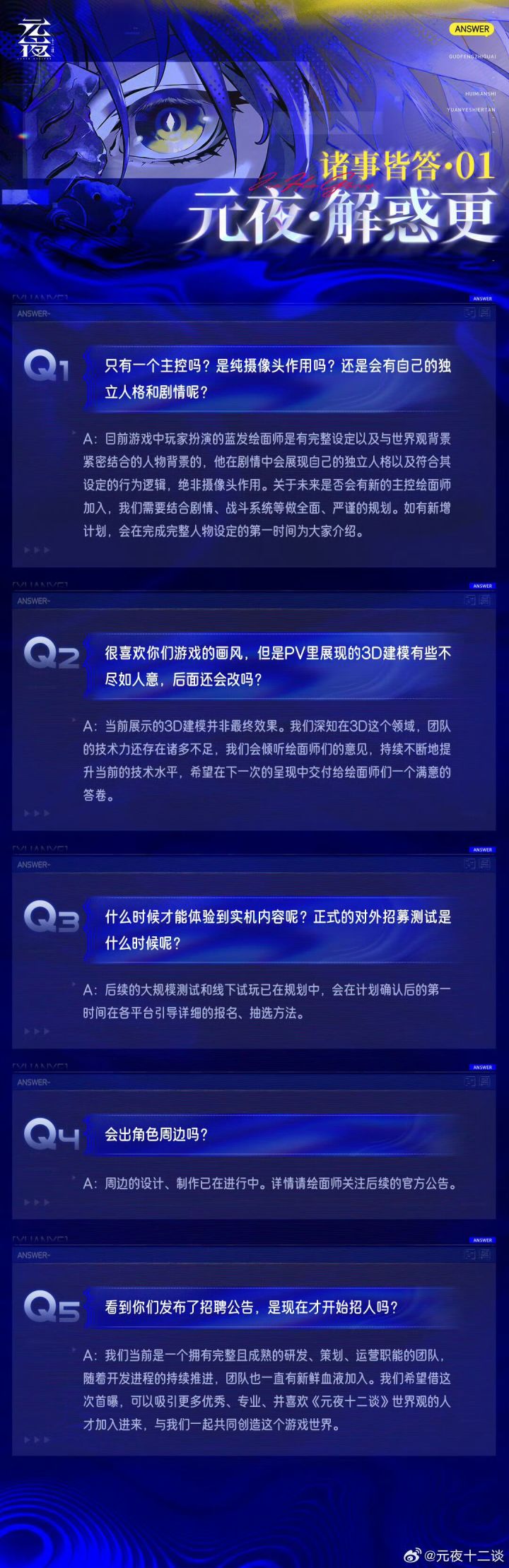 元夜十二谈官方答疑 回应玩家核心关切