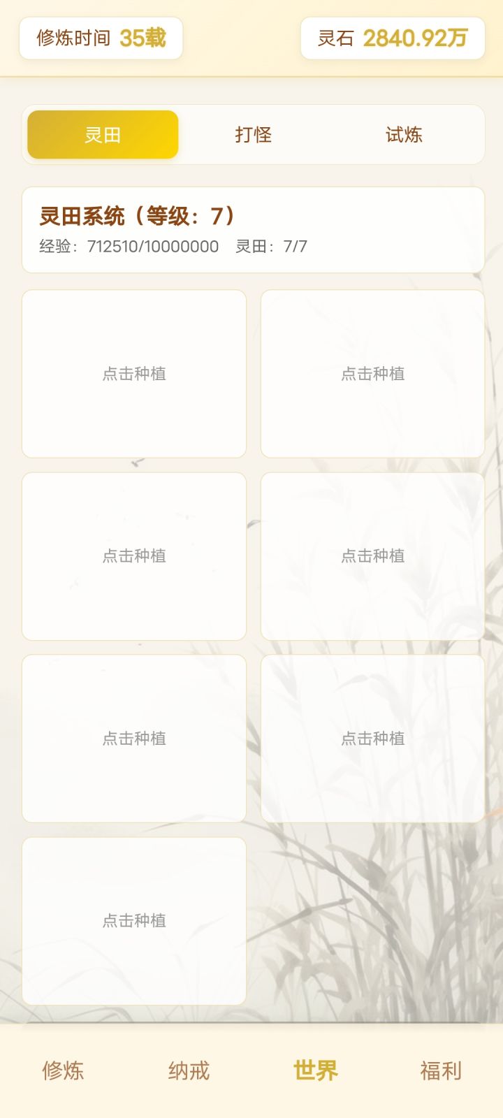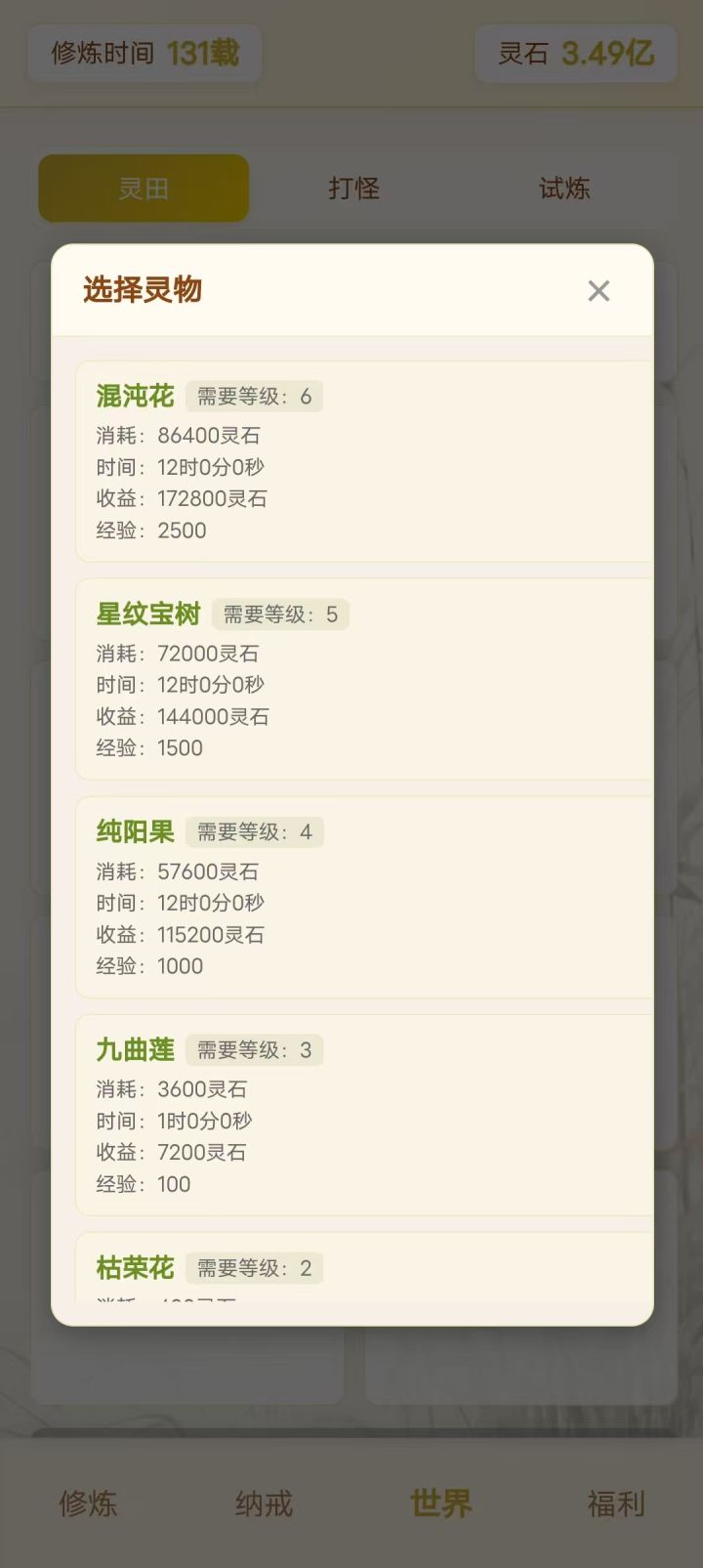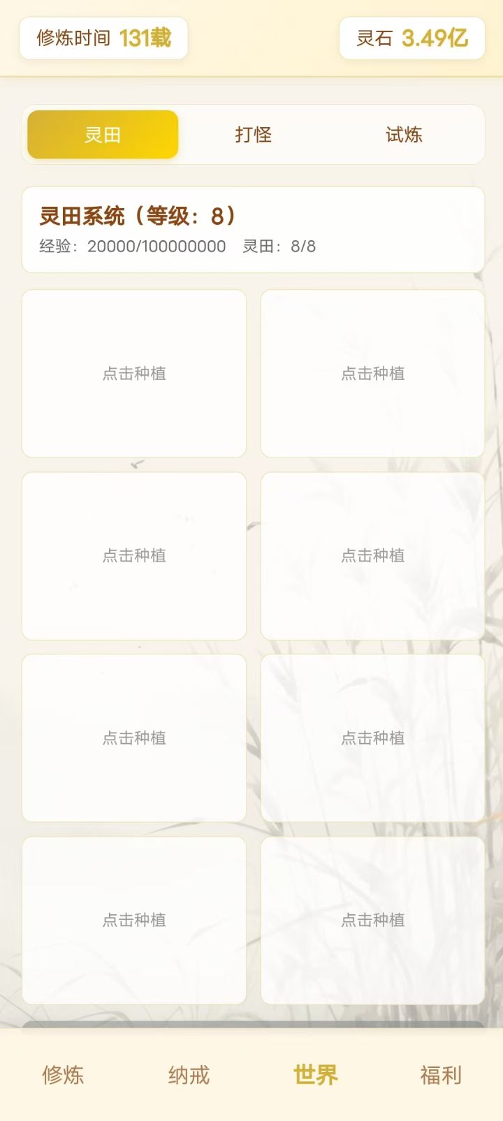 熬夜玩了几小时,中间发现能改时间,然后一直刷道行刷灵石开局用礼包码刷出玄道灵根跟山海法印,再去打世界里面的第一个大陆试炼,打通关会送一张转生卷,如果你提前打通关再清除数据刷新后打大陆试炼它不会再出转生卡,这个需要你重新卸载再下载才会出。然后开始疯狂改时间刷道行,顺带把灵田种了,灵石刷到几百万后可以疯狂百连抽,给灵根跟法印吞噬,灵根加每秒吸收道行。