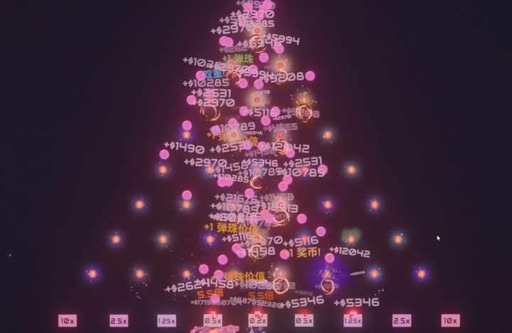 我们可以尝试不同流派打法,尝试购买触碰有增益效果挡钉时可获得一定钱币,随后通过增加弹珠数量,以及将整个挡钉盘全部加上效果,通过挡钉也可能赚钱。或者尝试增加每颗弹珠所拥有的价值,这样就将原本固定的数值变成了无限成长的潜力股。亦或者直接把用卡牌的效果,让掉入低倍率的卡槽的弹珠可以额外获得来自总金额的部分,这下可能中心最低的槽位赚一颗的钱,都比外围高倍率的槽位高出好多。