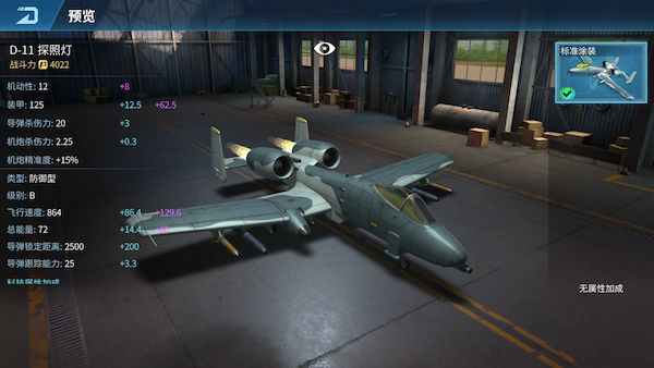 D-11探照灯是一种单座双引擎攻击机,负责提供对地面部队的密接支援任务,包括攻击敌方战车、武装车辆、重要地面目标等。解锁条件:等级2飞机类型:防御型购买条件:1200金币提前购买:22钻石