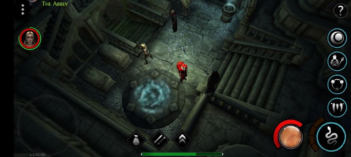 副本中引怪神殿,点紫色传送门,点漩涡,回去也是点漩涡,紫色传送门有重置时间,不到点不了,回去可以卖装备和修理装备,这个副本不给经验只给装备可以变卖游戏币,有的技能黑了就不能用了,我的召唤骷髅法师和战士都黑了,只能用瘟疫毒蛇+吸血鬼之牙+连锁闪电+剧毒箭+盾牌,第3和第4是装备带的技能,佣兵死了也可以用紫色传送门再花钱召唤回来