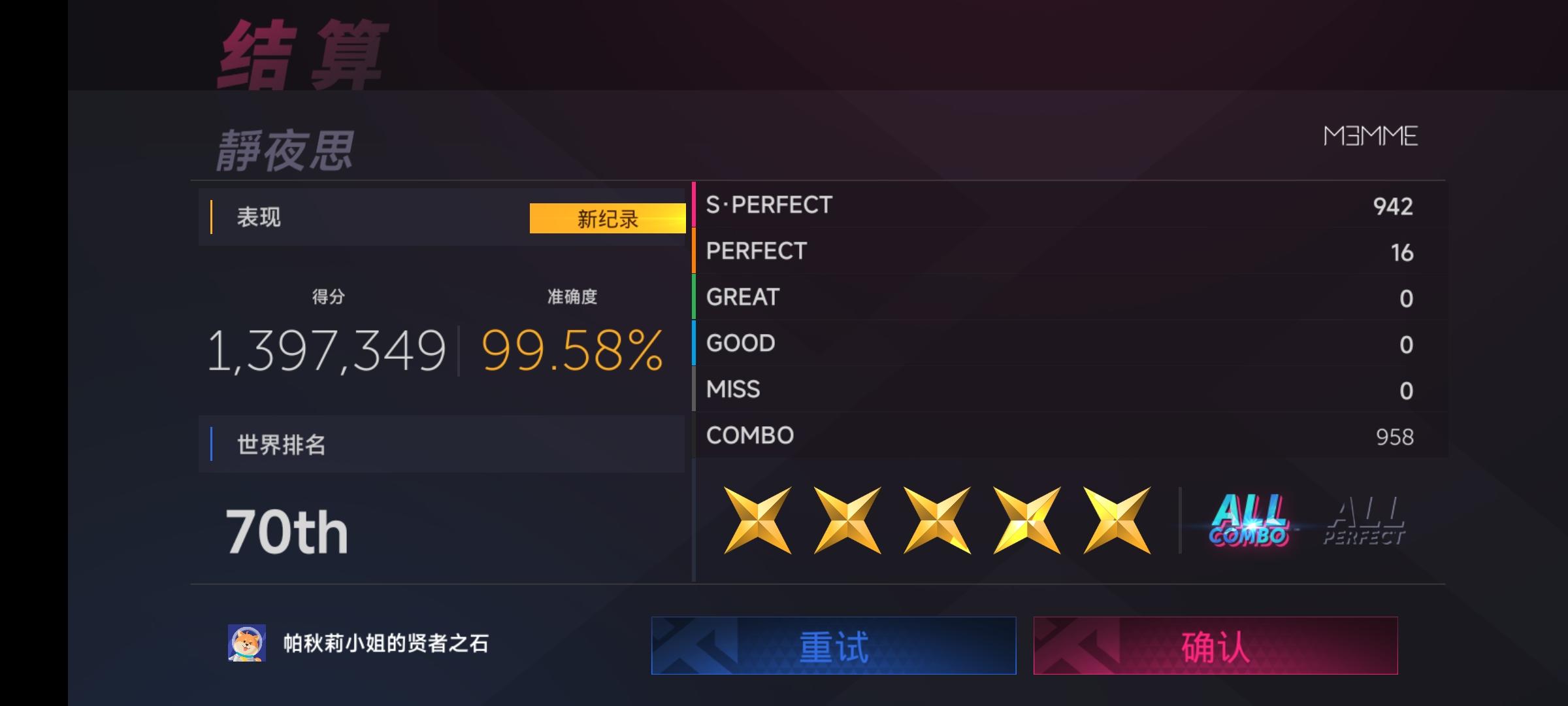 虽然我底力也很菜(后面的魔王,一些高难曲,还有带长交互、子弹多、双押多的谱子基本只能打nm),但是打两边的时候经常手偏一点就miss了,那些明明能跟上节奏,结果因为定位没打上的,稍微有点绝望呢