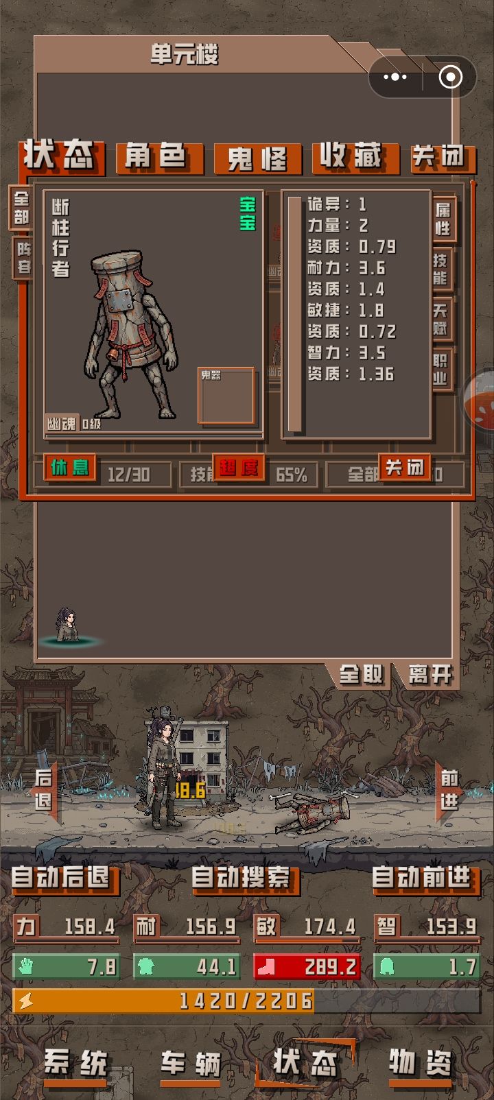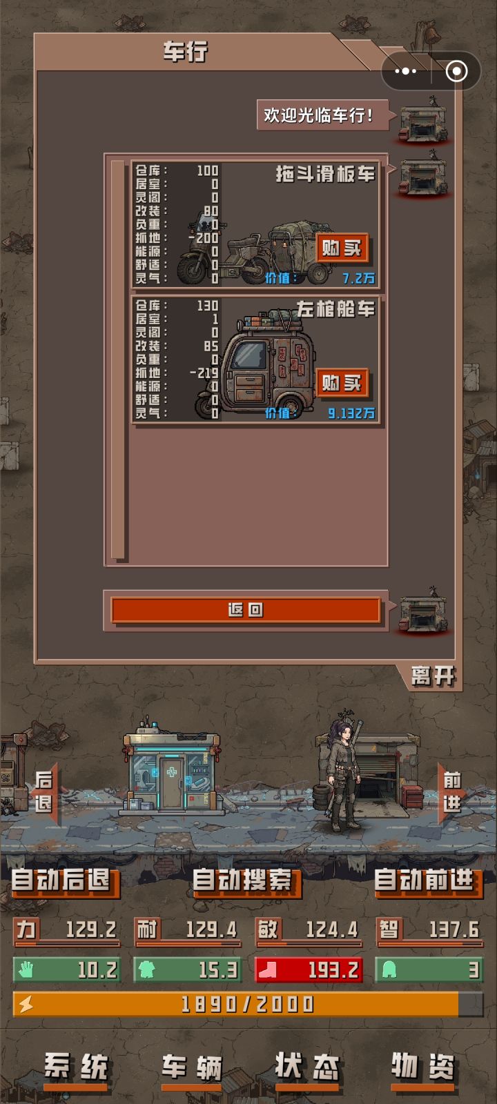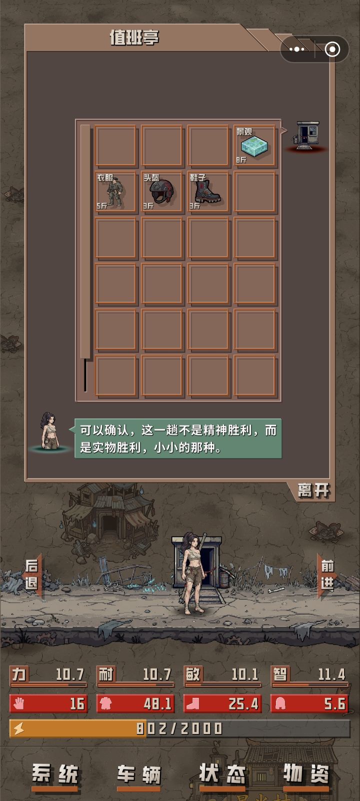 后面的地图非常鸡肋,怪越来越强大,但是掉的东西跟前面的没什么区别,人升不了,装备也升不了,关键是连续几个地图都没有加油站,东西卖不了,油加不了,只能来回跑来回跑,油都浪费在途中,要是背包大一点还好说,背包小一点,攒的东西都不够油费。等后面作者更新了再来玩吧