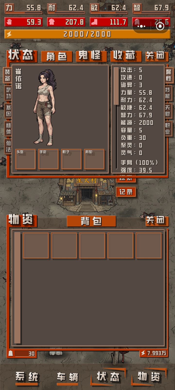 装了个引擎后怎么这点负重就已经快满了……(六百负重跟假的一样),就图里面这排东西没了