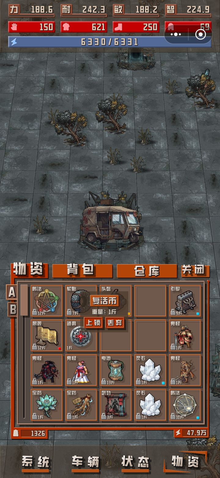 后面的地图非常鸡肋,怪越来越强大,但是掉的东西跟前面的没什么区别,人升不了,装备也升不了,关键是连续几个地图都没有加油站,东西卖不了,油加不了,只能来回跑来回跑,油都浪费在途中,要是背包大一点还好说,背包小一点,攒的东西都不够油费。等后面作者更新了再来玩吧