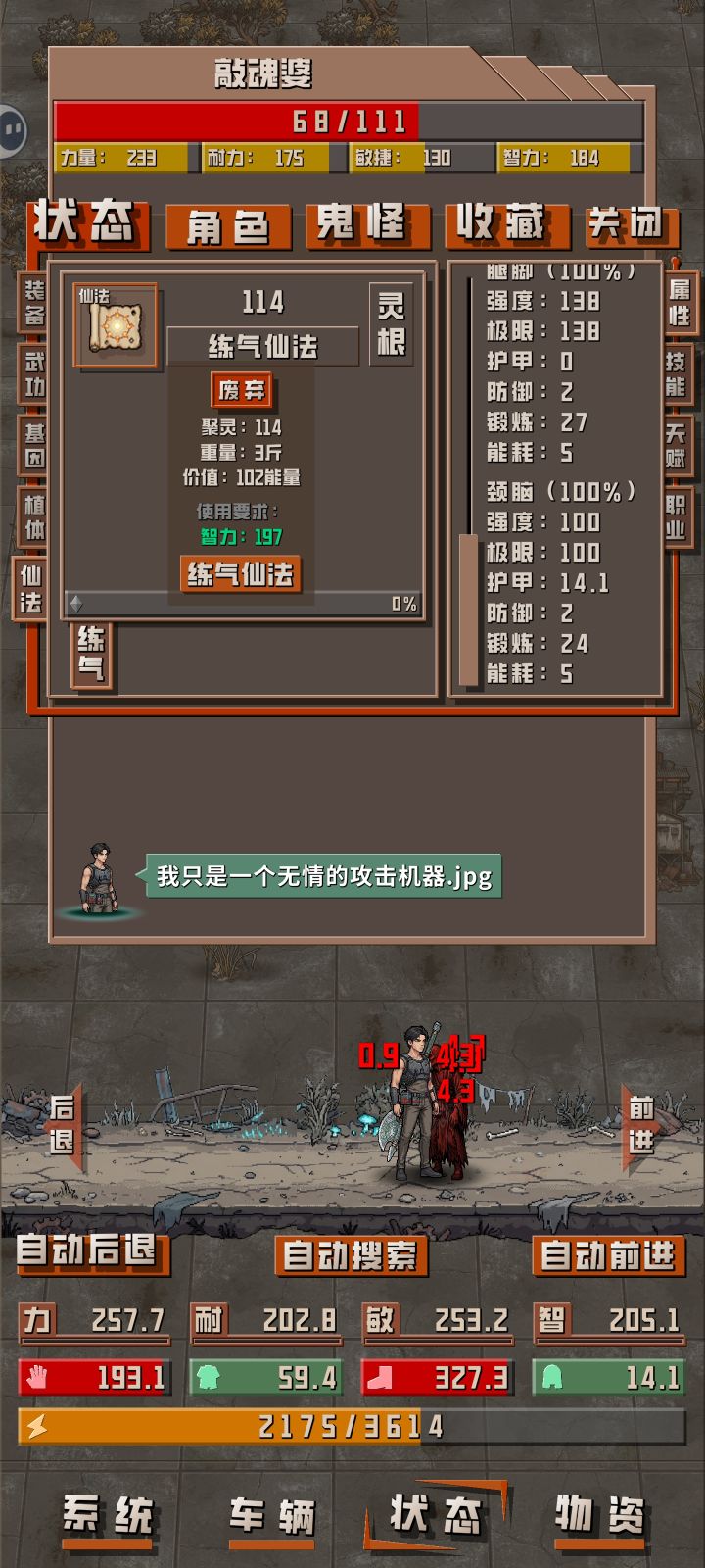 后面的地图非常鸡肋,怪越来越强大,但是掉的东西跟前面的没什么区别,人升不了,装备也升不了,关键是连续几个地图都没有加油站,东西卖不了,油加不了,只能来回跑来回跑,油都浪费在途中,要是背包大一点还好说,背包小一点,攒的东西都不够油费。等后面作者更新了再来玩吧
