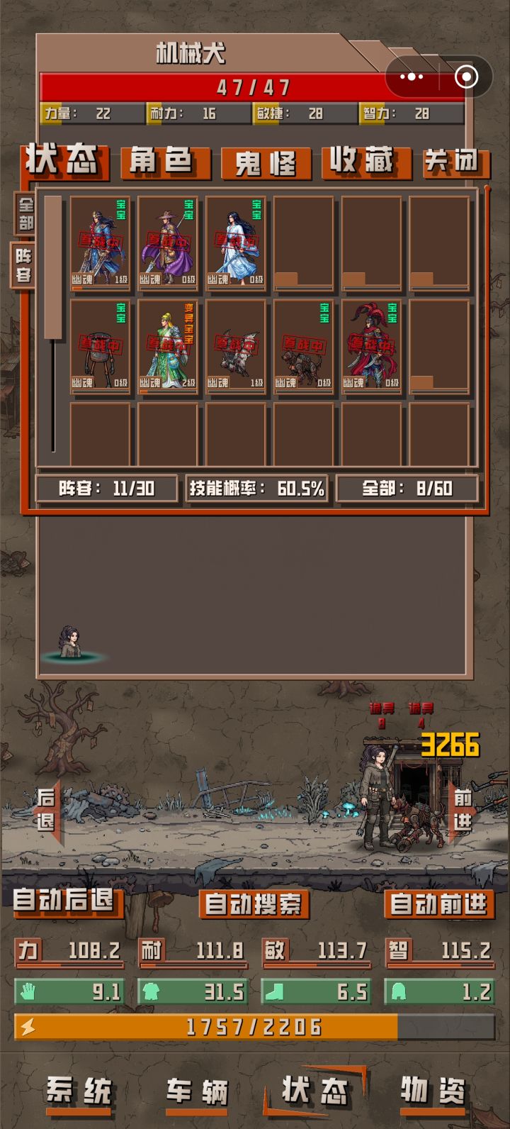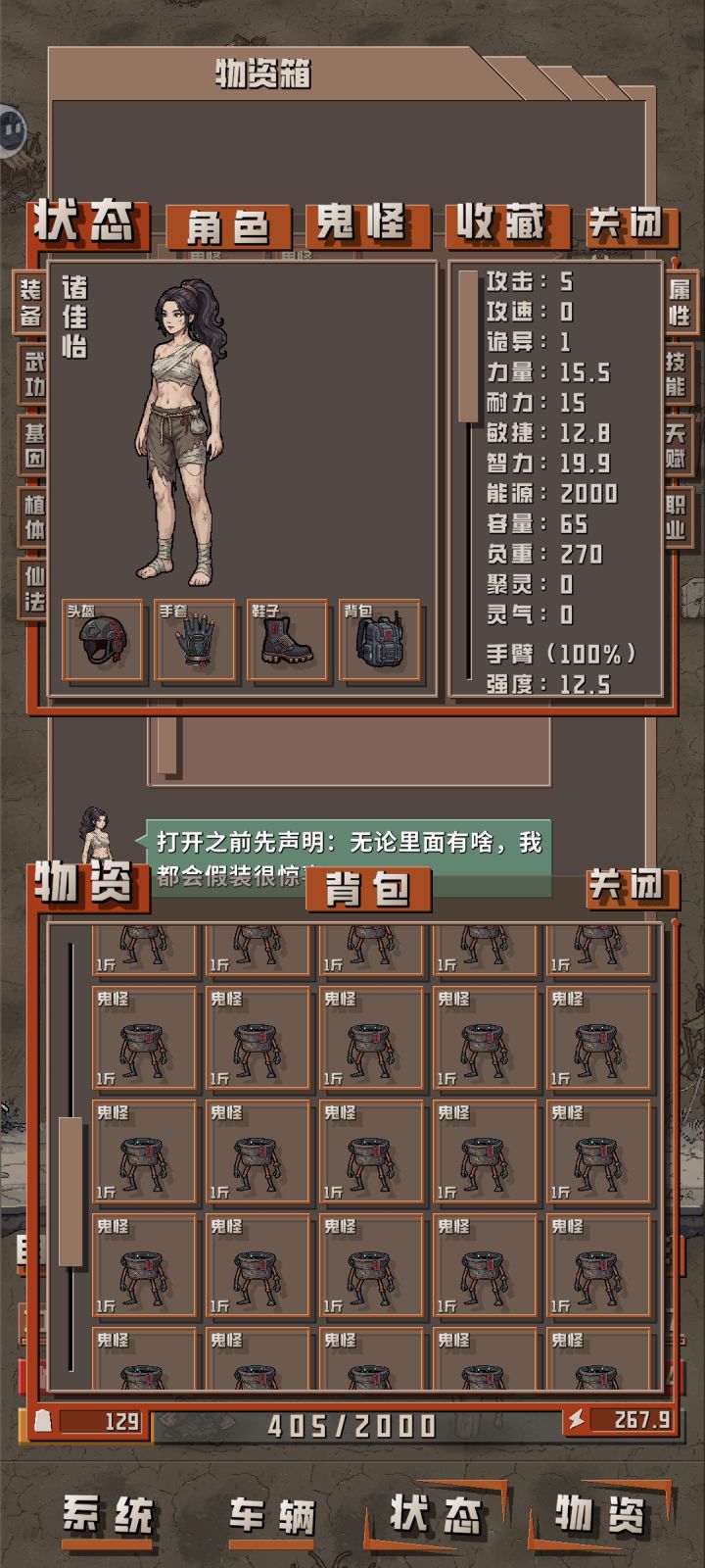 4月12日:抱歉!水浒鬼怪的属性错误,所以该正常了,没想到引起了连锁bug。。1、修复水浒鬼怪消失的bug。2、降低水浒鬼怪的诡异,统一为1 。3、大幅降低开局车辆购买价格。4、修复水浒鬼怪属性bug。5、修复聚灵阵、灵石无法装备的bug。4月11日更新:1、3个城市及地图。2、修复基因不能删除的bug。3、更新后还有可能会导致收藏卡片丢失,我这次在修复这个bug,但可能还会触