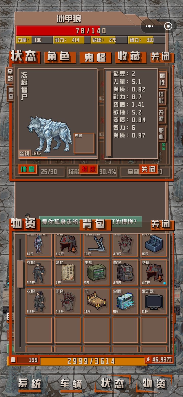 4月12日:抱歉!水浒鬼怪的属性错误,所以该正常了,没想到引起了连锁bug。。1、修复水浒鬼怪消失的bug。2、降低水浒鬼怪的诡异,统一为1 。3、大幅降低开局车辆购买价格。4、修复水浒鬼怪属性bug。5、修复聚灵阵、灵石无法装备的bug。4月11日更新:1、3个城市及地图。2、修复基因不能删除的bug。3、更新后还有可能会导致收藏卡片丢失,我这次在修复这个bug,但可能还会触