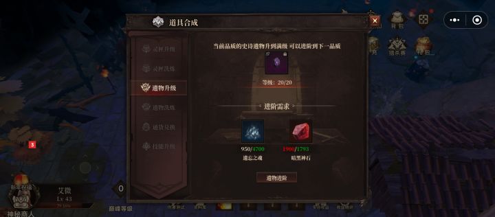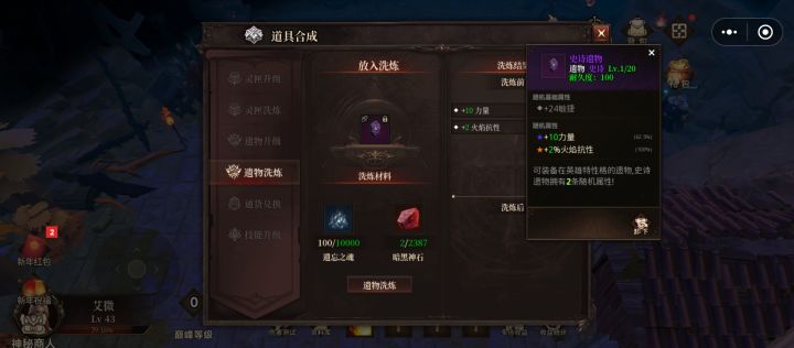 遗物,其实16层前不需要过多的投入资源,因为16层开始需要提升生存属性,而遗物是所有系统里给的生存属性最多的,如果16层前觉得伤害不够可以适当洗一些力量,智慧等属性来提供一些伤害,控制在史诗级遗物即可,可以升满级不用进阶,废话不多说,接下来教大家怎么洗遗物。遗物有基础属性和随机属性,随机属性是可以洗练的史诗级遗物材料可以直接通过易市购买,史诗级以上材料可以通过每天刷新神秘商店购买。遗物可以洗