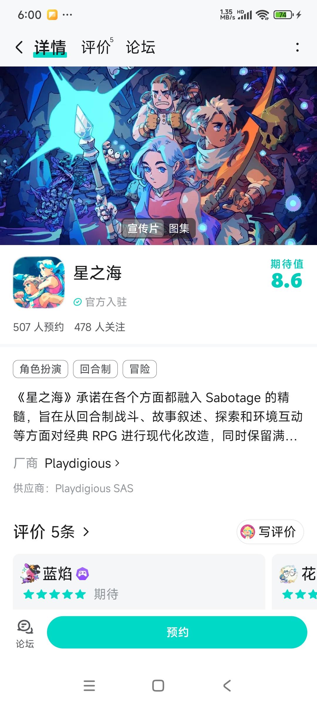 以上这几个是几个手机端试玩图片 支持Android和iOS平台发布!#星之海 游戏简介《星之海》在各个方面都融入Sabotage的精髓,旨在从回合制战斗、故事叙述、探索和环境互动等方面对经典 RPG 进行现代化改造,同时保留满满的怀旧情怀和纯粹的乐趣