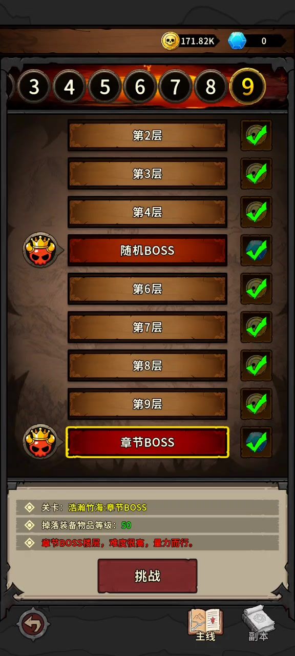 所有图均为一样的爆率,都一样的低哈 6章10关地图要小一些,刷的更快 所以要材料刷6-10 装备技能在视频后面 升级带宠物竹笋进图一秒技能秒一波怪就退