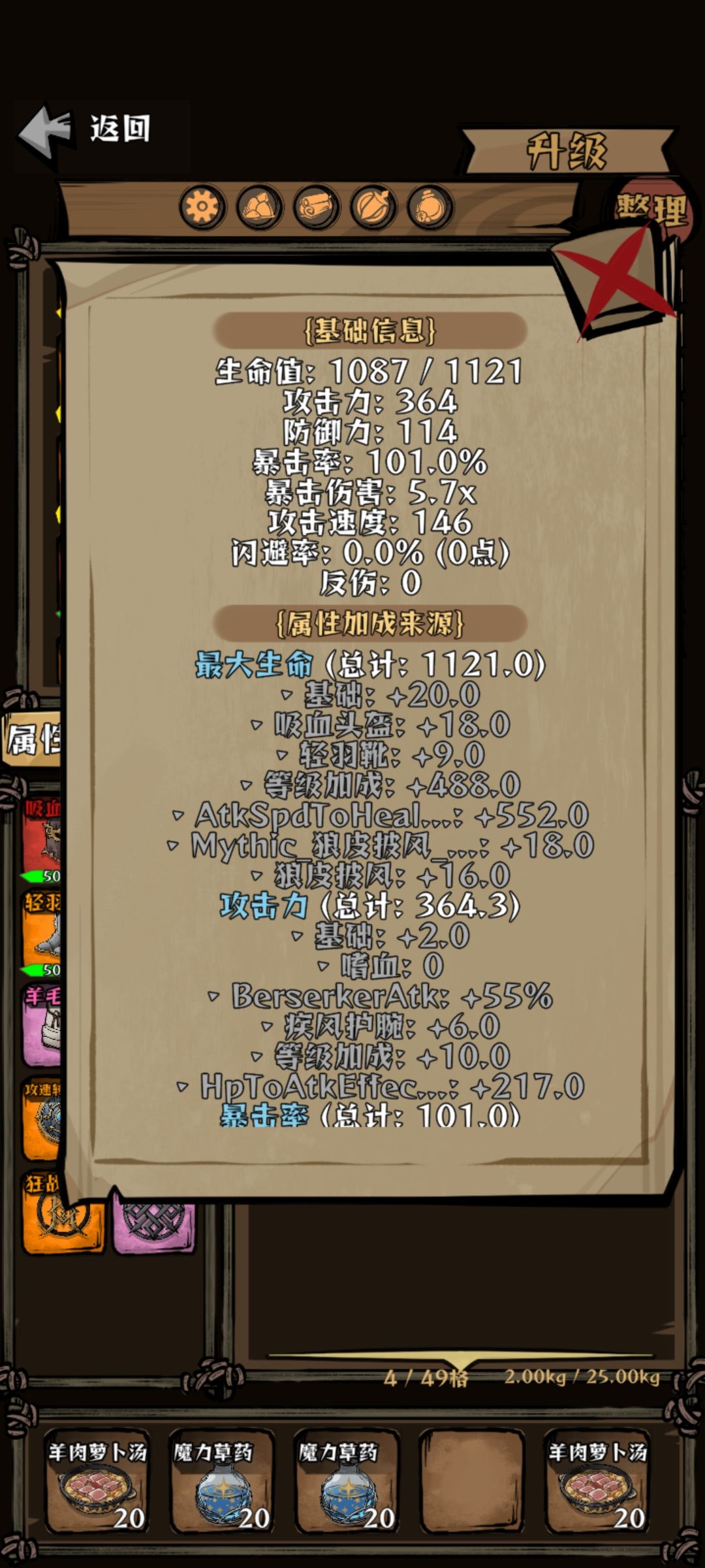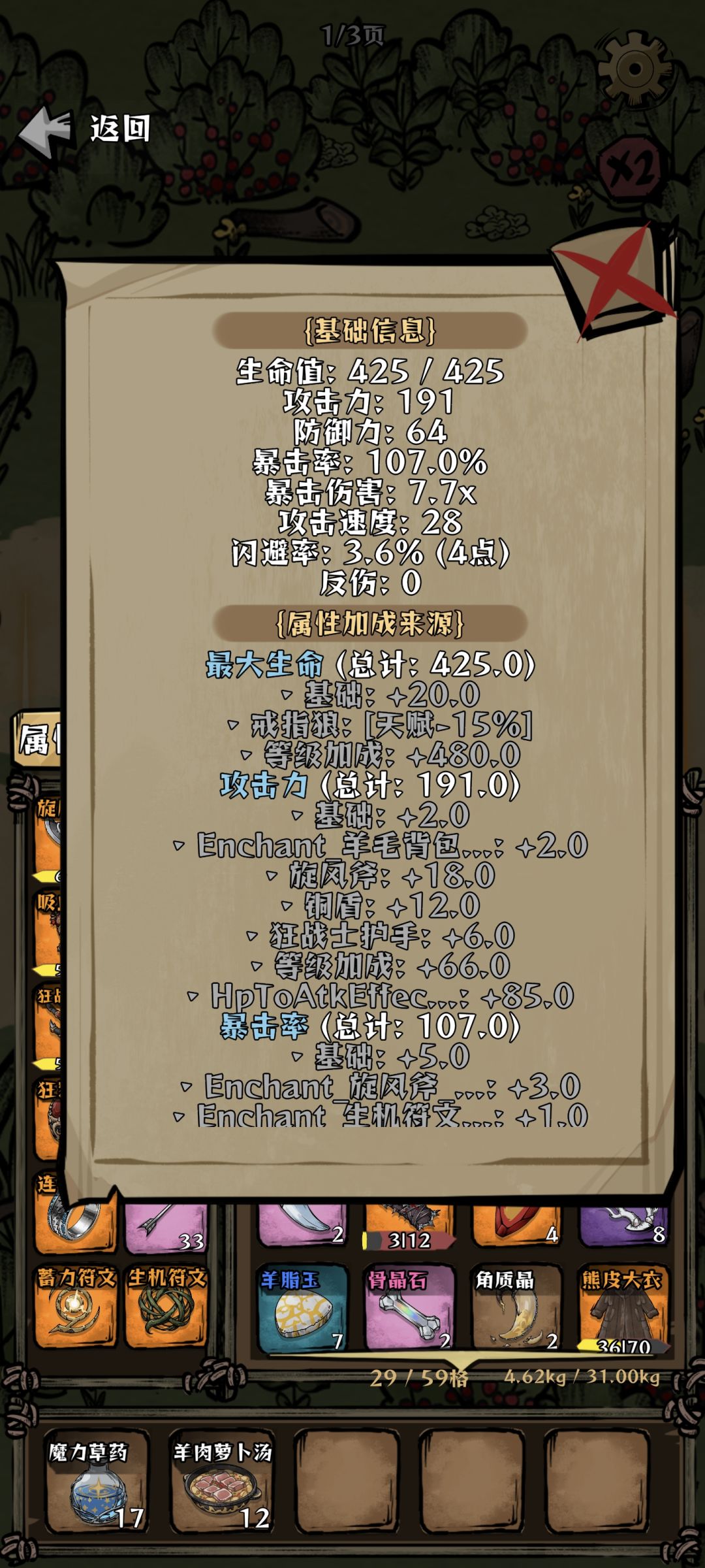 先叠甲,作者菌没有进官群,算是自己游玩时在一个小意外发现的这个机制流派。看前面的帖子有人能打出上万伤害,而作者菌目前只能打出3000+。感觉这个玩法应该很多人发现了,所以作者菌对于这个流派的理解不一定是最新最优的。大家如果对于玩法内容有更好的理解可以补充 叠完甲了。首先看图1和图2。分别是出门前的197攻击和叠完的614攻击。其中叠攻的最重要的两个帮手是图3里的吸魂符文和狂战护手。这两个在图二里分