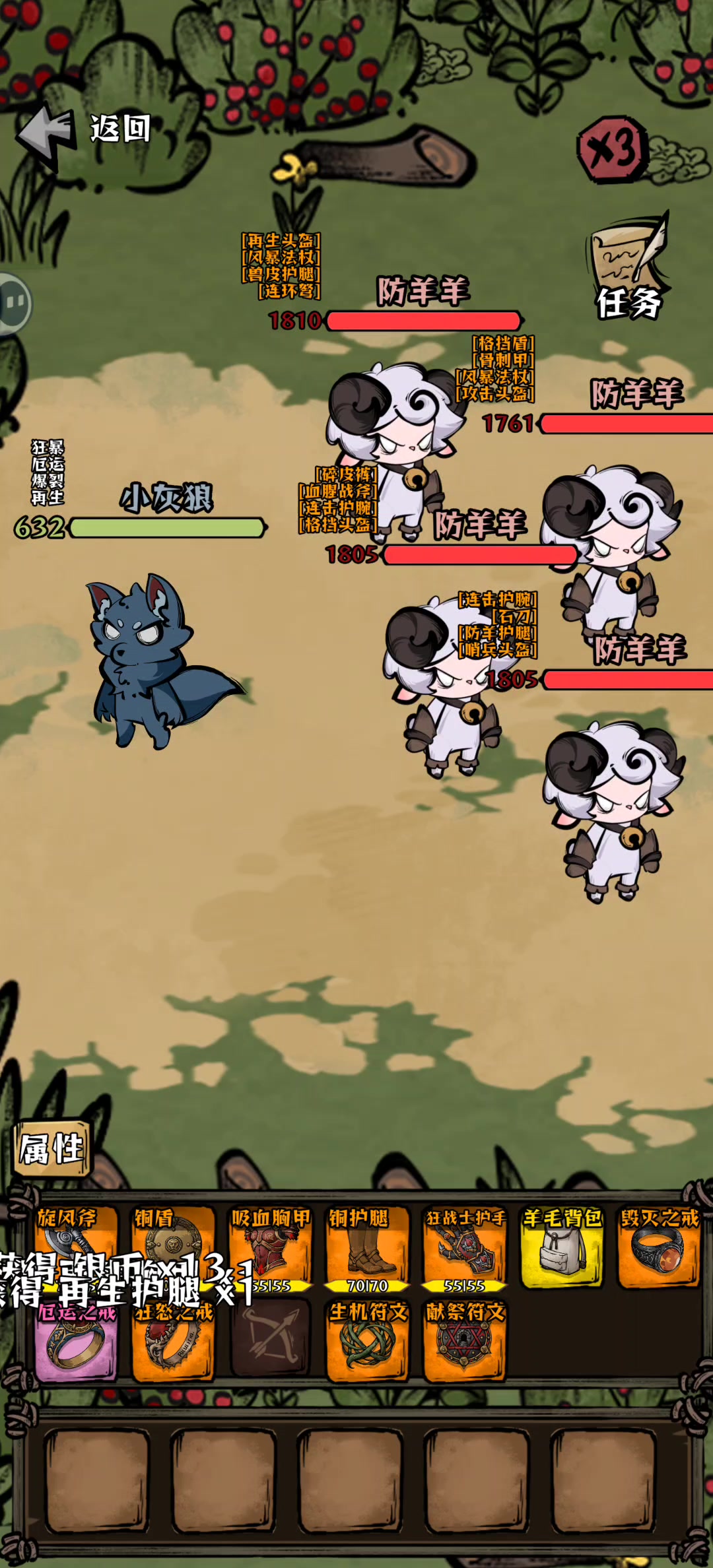 毕业武器-嗜血战斧\疾风双刃副手-铜盾(因为我们是满爆就不用羊角了)头部-前期羊村守卫头,后期野山羊角头盔(暴击头没实装,如果实装了建议带暴击头)胸部-吸血胸甲腿部-铜护腿,前期用粘土过度也不错(暴击腿没实装,不然就带暴击腿)手臂-前期铜护手或者狂战士,后期吸血护手双吸血戒指-狂怒戒指符文-献祭符文+坚毅符文3个属性转换符文15生命=1攻击3攻击=1防御4防御=1攻击首先这