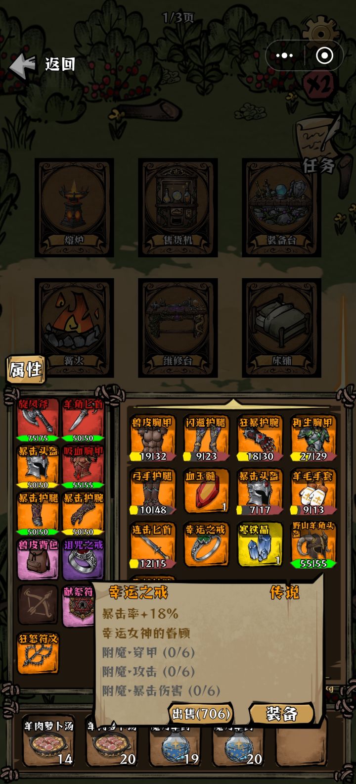 中阶刷狂怒戒指(每回合增加百分比攻击),深处刷坚毅符文(攻击转化为防御),绿色紫色都可以用来过渡 。。。这说的是在哪儿打啊啥也不懂