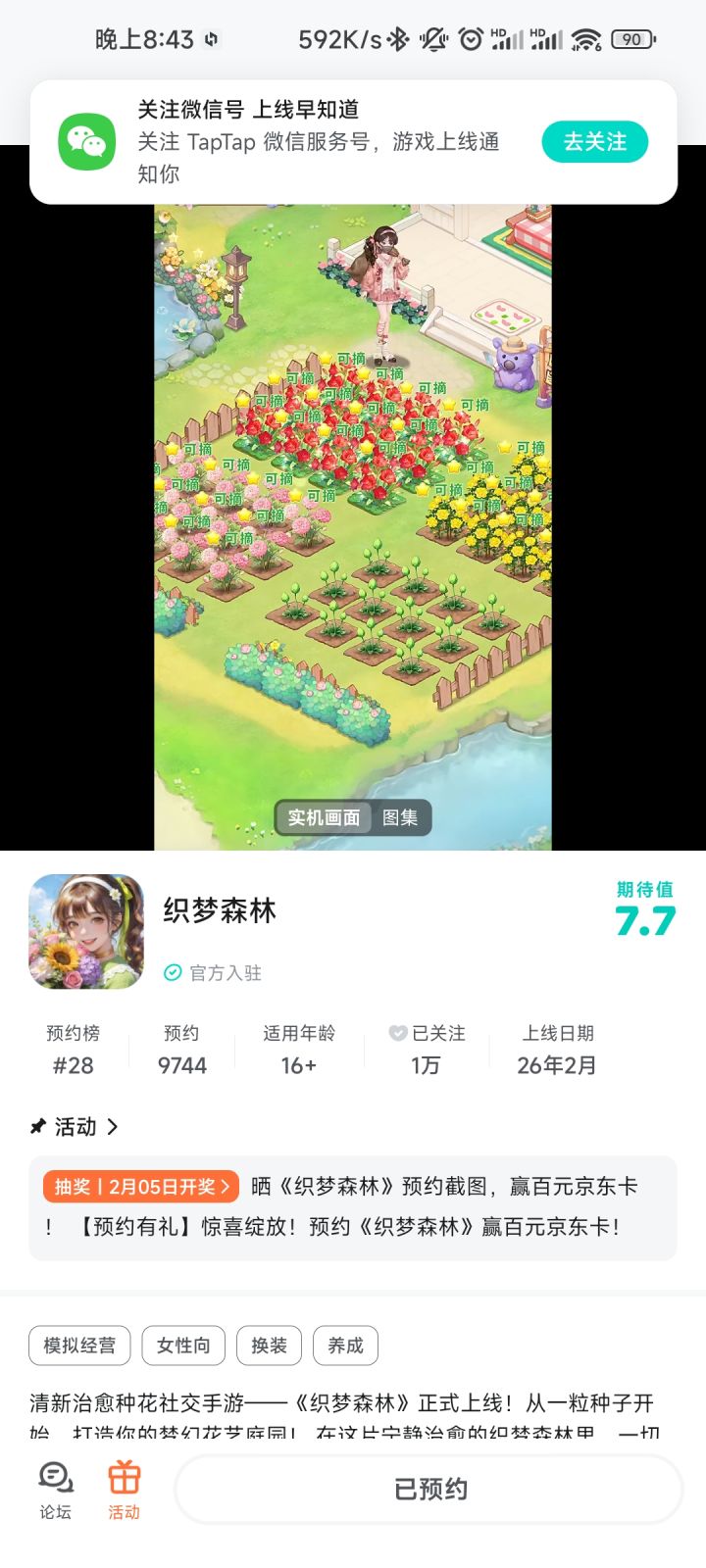#织梦森林 #织梦森林种花得真花 #情人节 #发现好游戏 #织梦森林种花 TapTap加码福利在评论区留言,还有机会随机获得游戏礼包掉落!礼包内容:钻石*60,水滴*60,加速风车*60,粉樱花瓣*30礼包名额:3名