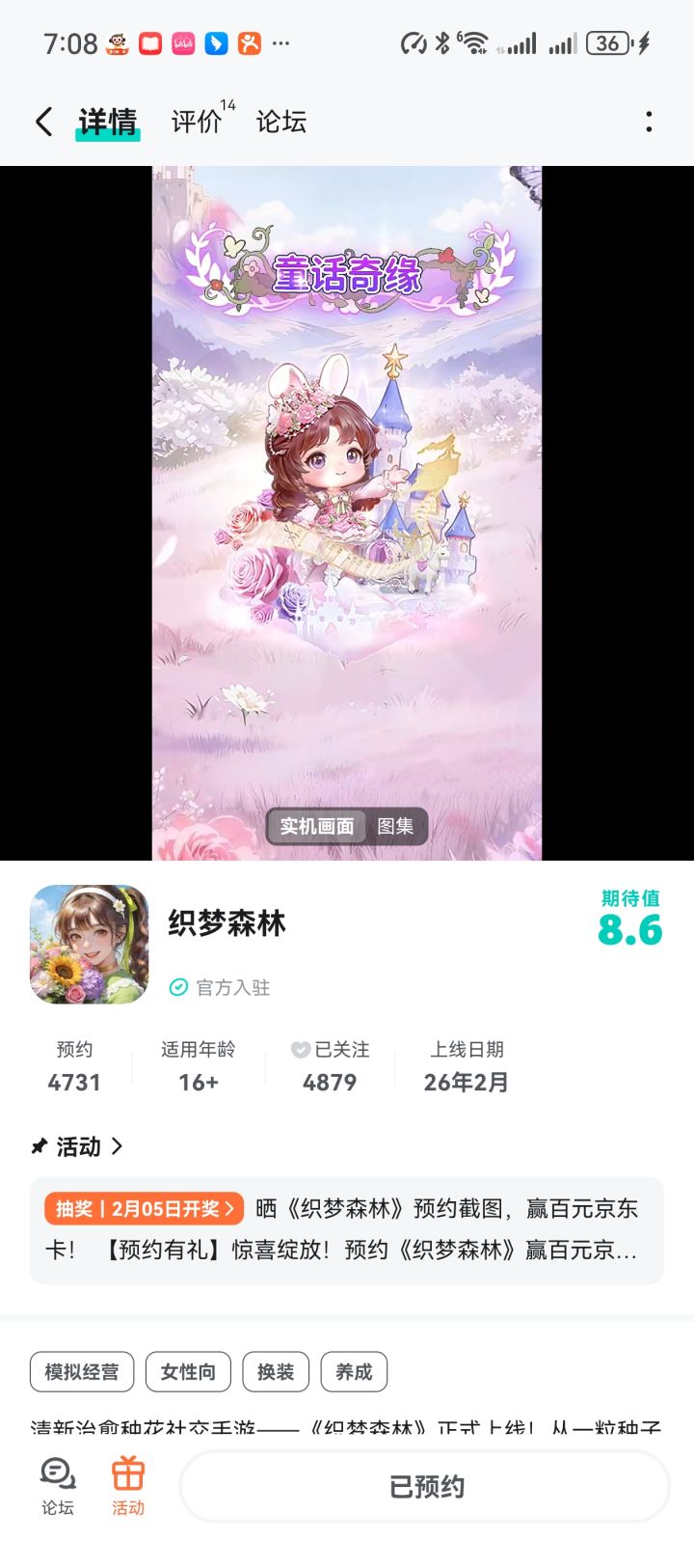 这个游戏画风好美,好想玩,好期待啊。希望织梦森林早日上线,越来越好!!!