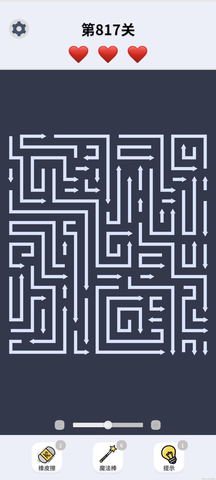 1)机制玩法新颖独特比较有创意,让人眼前一亮的那种感觉,但又不会很麻烦的那种,单纯的根据箭头方向进行类似迷宫形的进出,简单却又能在休闲娱乐中培养一定的逻辑思维判断能力,也是比较考验眼力的(不眼尖的就会很容易在一不留神间看走眼箭头的方向然后三颗小心心一下子就掉光光然后开局重开了哈,也是解压中带点刺激的不是)