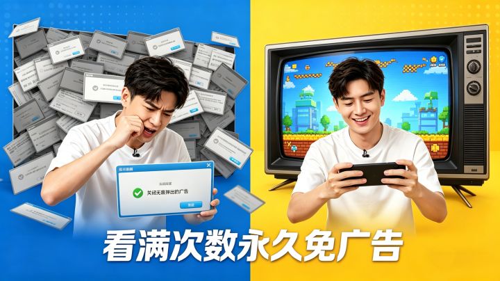 真心建议所有游戏:广告设次数上限,看满直接永久免广告! 玩过太多靠广告变现的休闲/单机游戏,最劝退的从来不是有广告,而是无休无止、没有上限的广告轰炸——闯关到关键节点弹插屏,领奖励必须看广告,复活要广告,连刷新个商店都要强制看广告,玩十分钟游戏,五分钟都在等广告跳过,最后忍无可忍直接卸载。 反而那些给广告设了「累计观看次数上限,看满直接永久免广告」的游戏,我不仅玩得久,还心甘情愿把该看的广