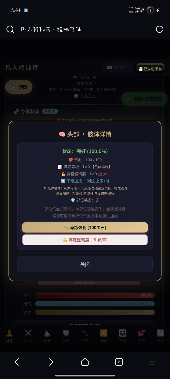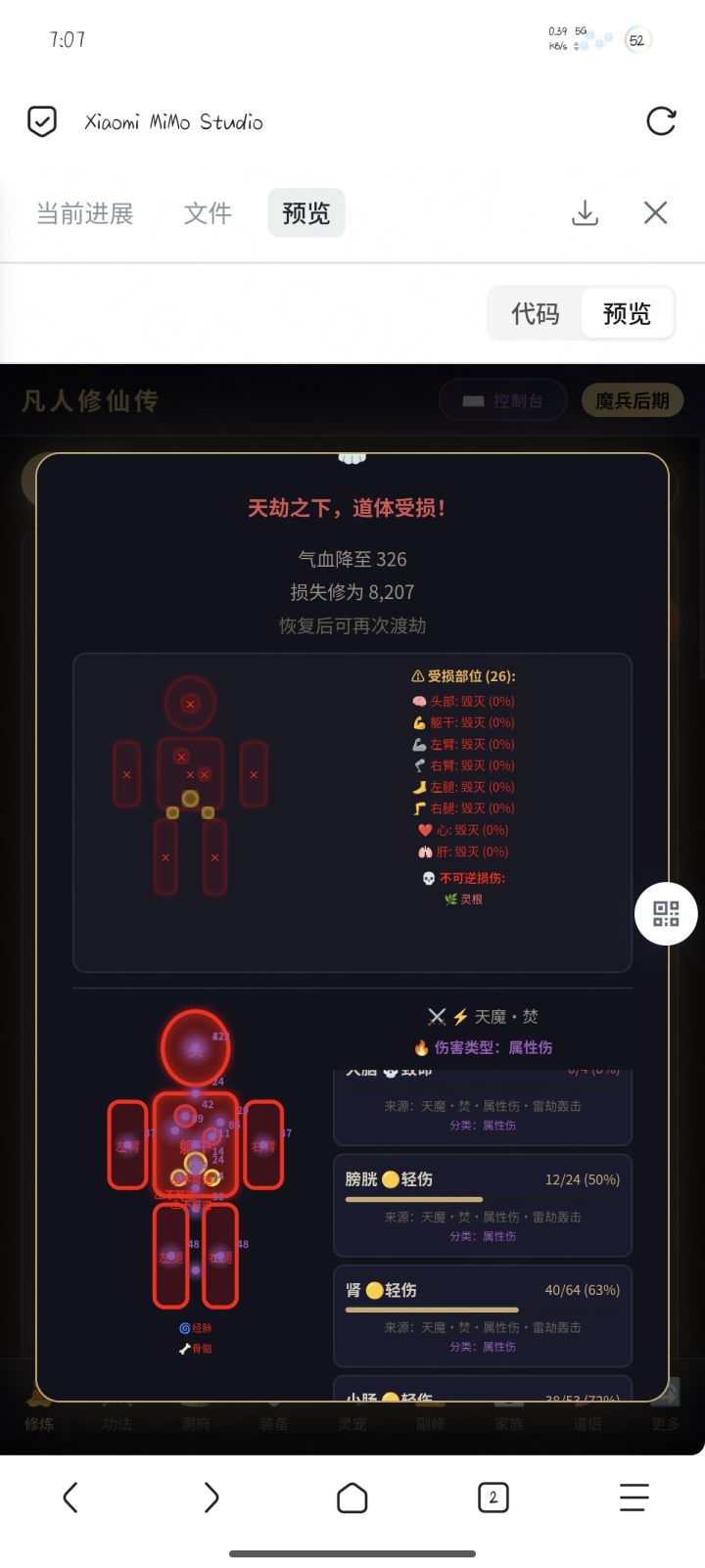 如题,大框架差不多做完了,但是因为API效率太低和自身技术限制,想要完善我的梦中情游,求求给一个测试资格吧呜呜呜😭😭😭下面是游戏功能核心系统(12大模块)1.修炼系统 — 自动积累修为,突破境界。从练气期到散仙、真仙、金仙,42+个境界层级,渡劫失败可能身死道消2.功法系统 — 凡级→神级→至高级功法,法修/体修双路线,支持自创功法(自定义名称与属性)3.灵根&体质系统 — 五行杂灵根→