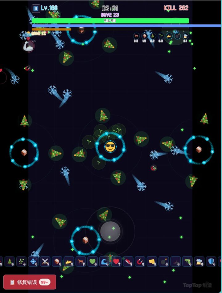 更新后有三个初始emoji和三个可免费获取的扩展emoji, 角色获取自己的所有技能后额外可获取一部分其他角色的技能, 快养成你的最强emoji,冲刺排行榜最高波次吧! #TapTap制造 #TapTap聚光灯独立游戏 #吸血鬼幸存者 #电棍otto #弹幕射击