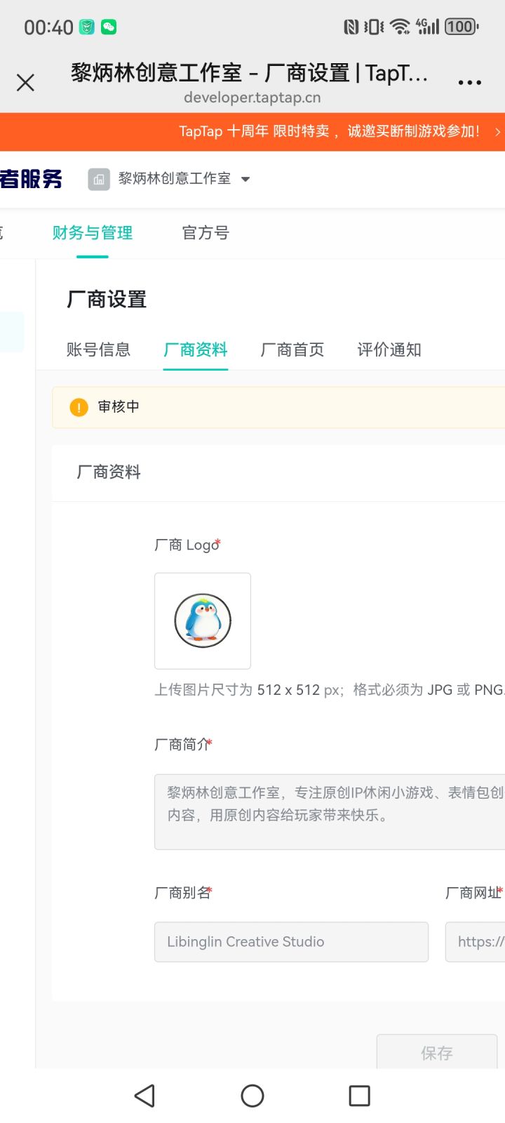 各位TapTap制造官方团队、审核老师好: 我是TapTap平台创作者「羽化晴天」,个人账号ID:770600107,同时为「黎炳林创意工作室」(开发者ID:395680)的主体负责人,于4月9日正式提交了TapTap制造AI游戏生成工具的内测资格申请,至今已过去5个工作日,特来跟进审核进度,并补充完整项目说明,以便团队全面评估。 一、账号与资质说明 本人已100%完成平台实名认证与创