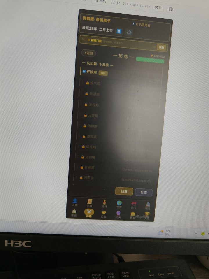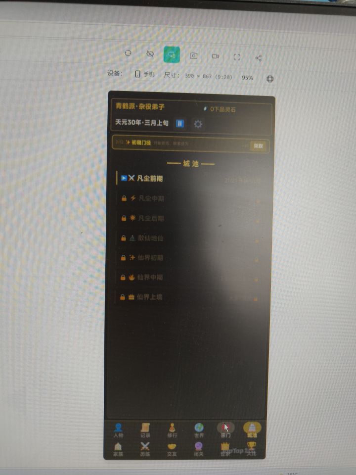 我想做的是一个融合了宗门,家族,城池,历练,秘境等大型内容的修仙游戏,由于框架太大,正在慢慢实现,已经做了不少了,大家可以来试试。我会持续更新,大大是业余的,而且只有一个人,每天更新内容有限,如果有问题会改的,大家可以跟我反馈哦🙄
