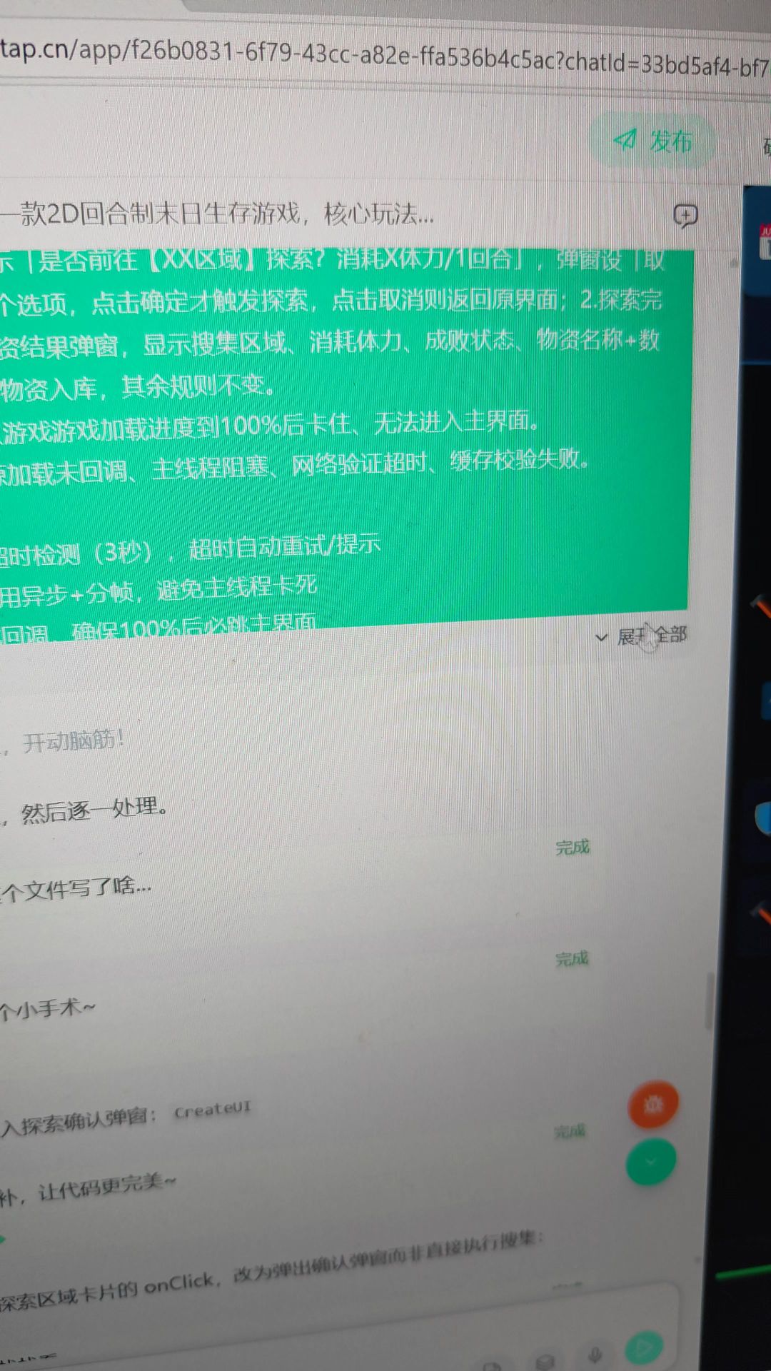 说真的,拿到资格的那一天,输入的第一段话,基本就把我想到的玩法成型了,我真的激动的快哭了,之后日子便是生成美术跟角色了,上传时候出了些问题,好不容易解决了,看到那条过审的信息真的快要哭出来了